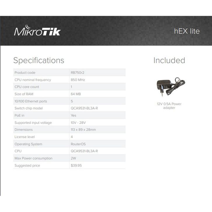 Mikrotik Router Indoor RB750r2 hEX Lite RB750 r2