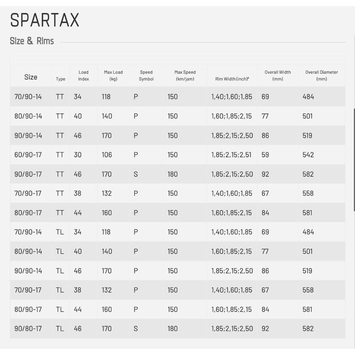 FDR SPARTAX TUBELESS / TUBETYPE NON TUBLESS RING 14 (70/90-14 - 80/90-14 - 90/90-14) BAN LUAR DEPAN BELAKANG / BAN