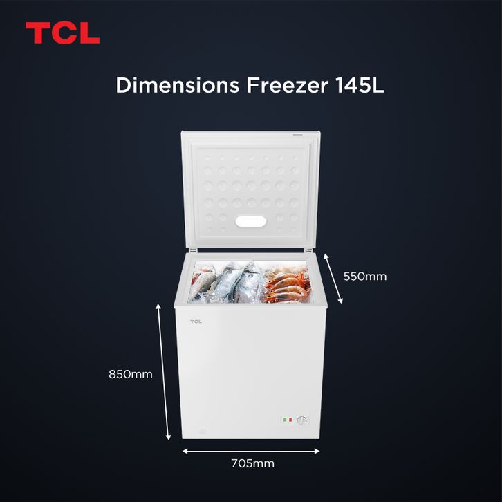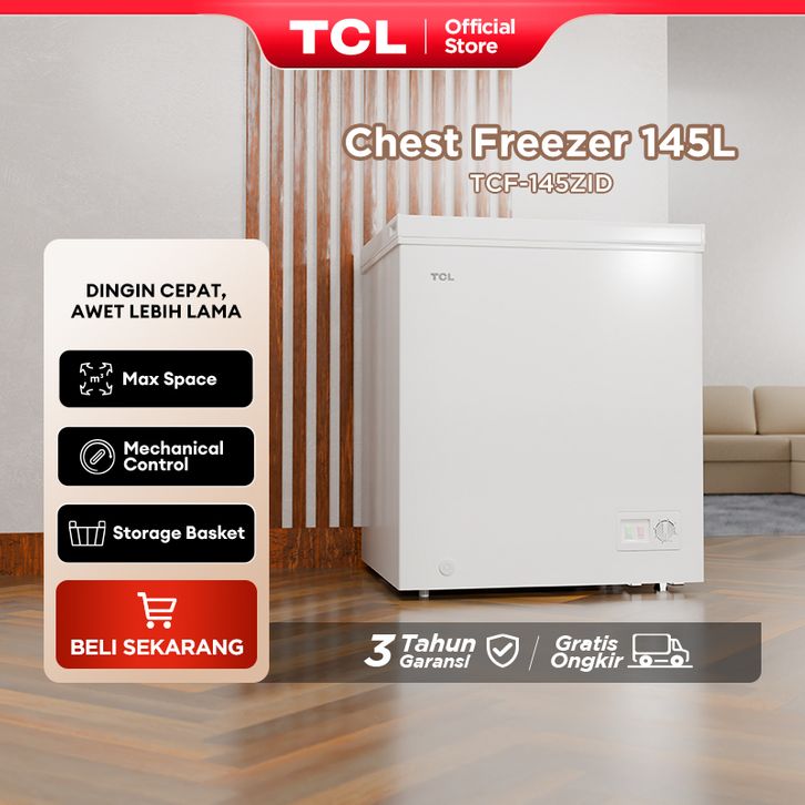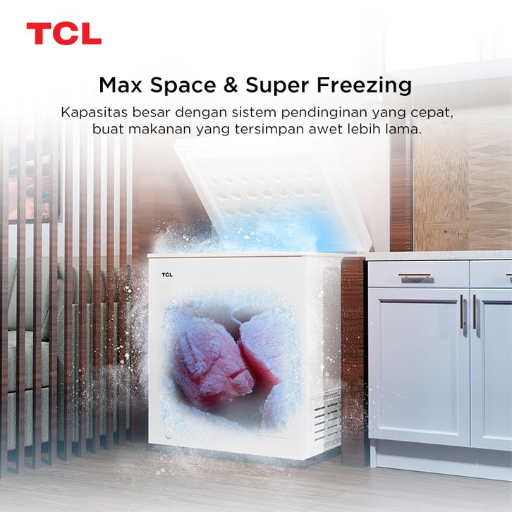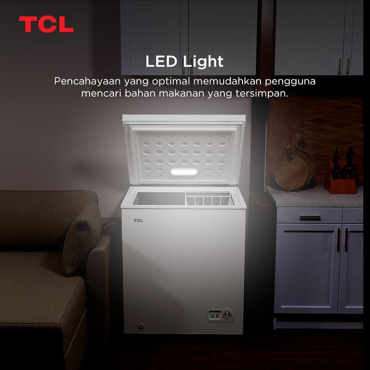 TCL Chest Freezer Kapasitas 145 Liter Super Freezing - Storage Basket Besar - Pembuangan Limbah Air - Lampu LED - Child