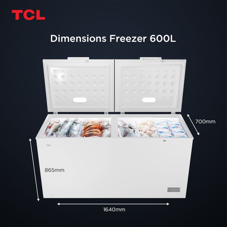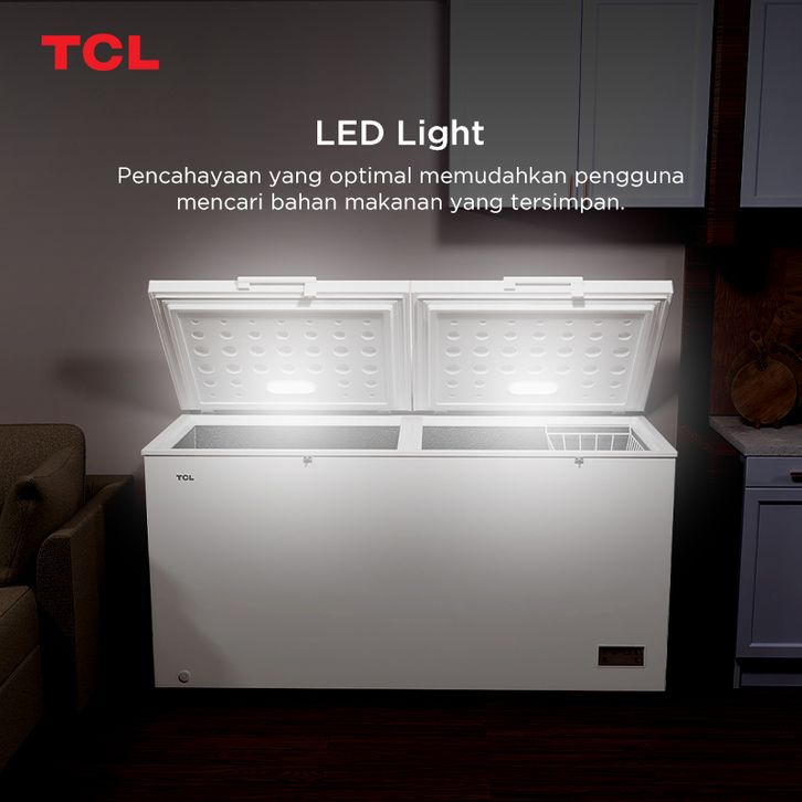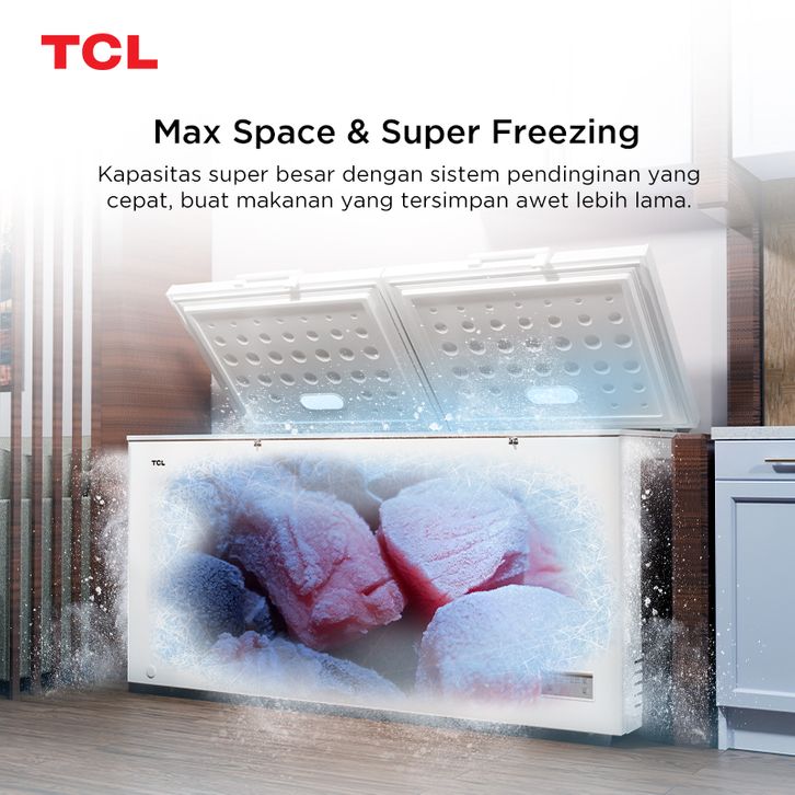TCL Chest Freezer Kapasitas 600 Liter Super Freezing - Storage Basket Besar - Pembuangan Limbah Air - Lampu LED - Child