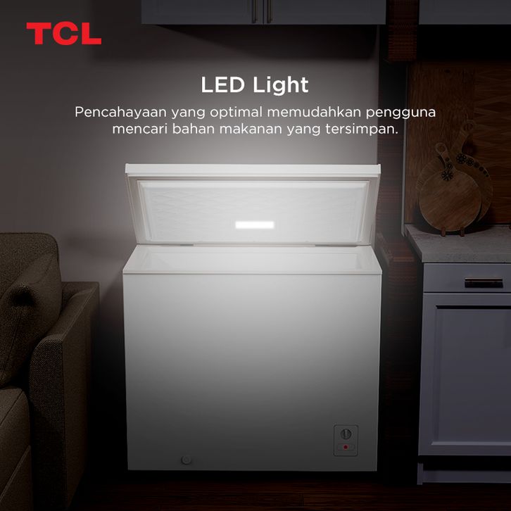 TCL Chest Freezer Kapasitas 210 Liter Super Freezing - Storage Basket Besar - Pembuangan Limbah Air - Lampu LED - Child
