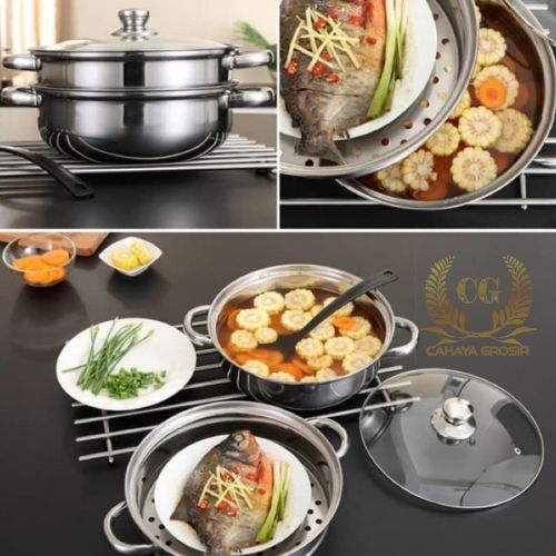 PROMO Panci Kukus streamer panci siomay kukus 2kuping stainlees steel 2 in 1 serbaguna panci siomay stainless