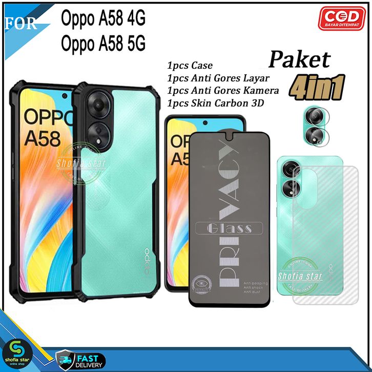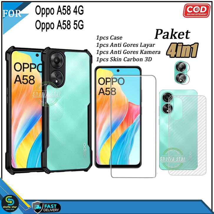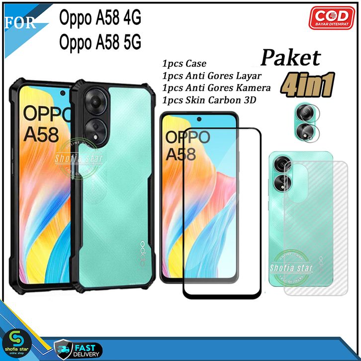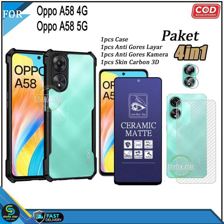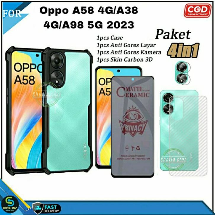 (TERMURAH)Paket 4in1 Case Opo A58 NFC 4G A79 5G A98 5G A38 4G A18 A57 4G A57S A77S A55 4G A54 Soft Case Shockproof