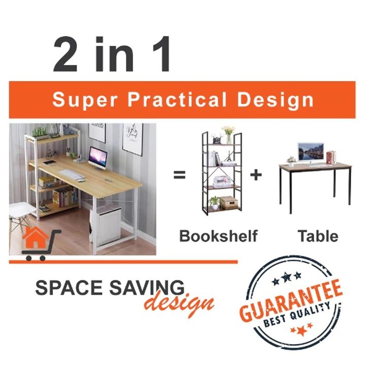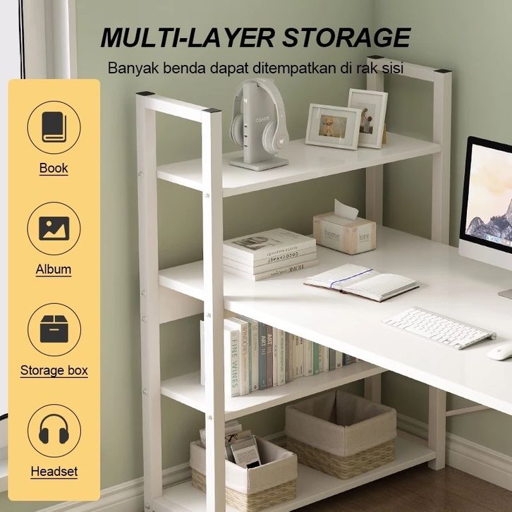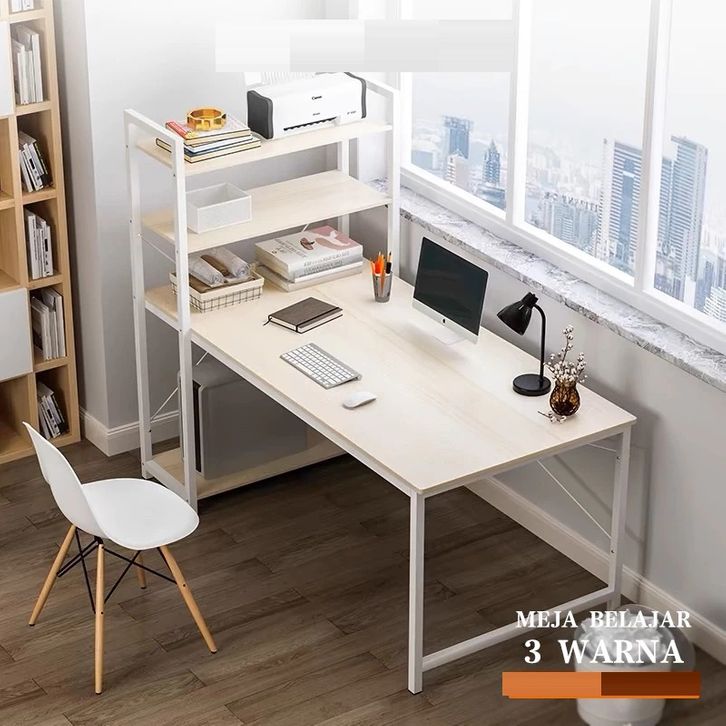 E-TIFE Meja Belajar Minimalis Meja Belajar Dengan Rak Buku Meja Kerja Dengan Rak Serbaguna (H Table)