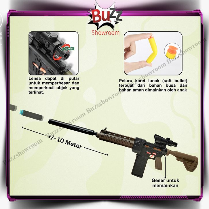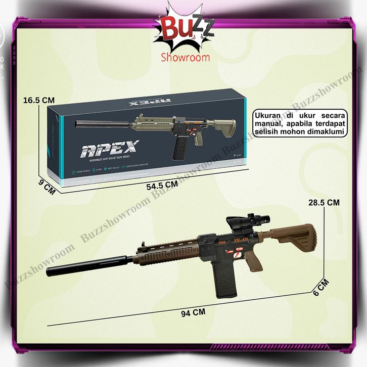 Mainan Anak APEX KSL-416 Pubg Soft Bullet M416 HK416