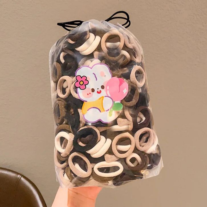 100 PCS IKAT RAMBUT KOREA WARNA WARNI KARET DONAT ELASTIS MINI UNTUK WANITA GAYA POUCH AKSESORIS ANAK-ANAK