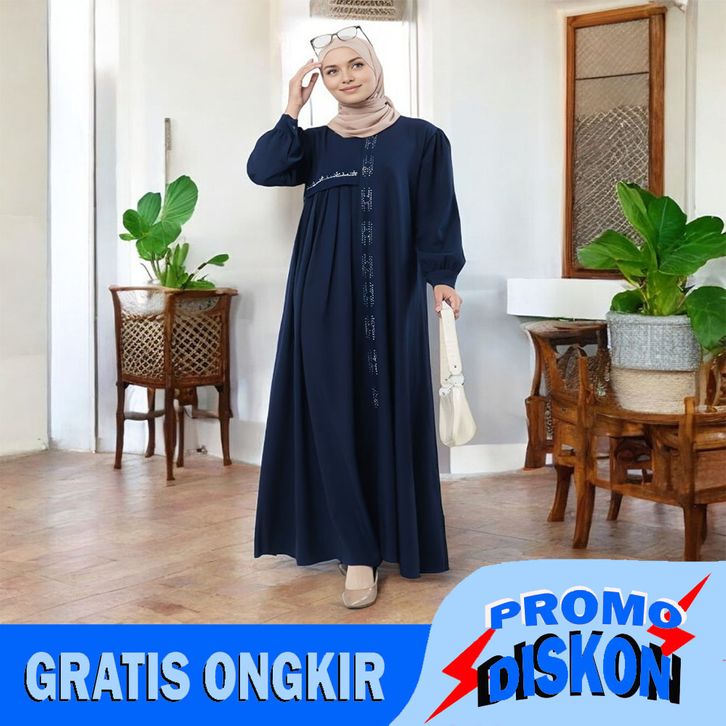 Gamis Pesta Mewah Elegant Berkelas Lovela Maxi Baju Dress Kondangan Polos Mix Swaroski Size S M L XL