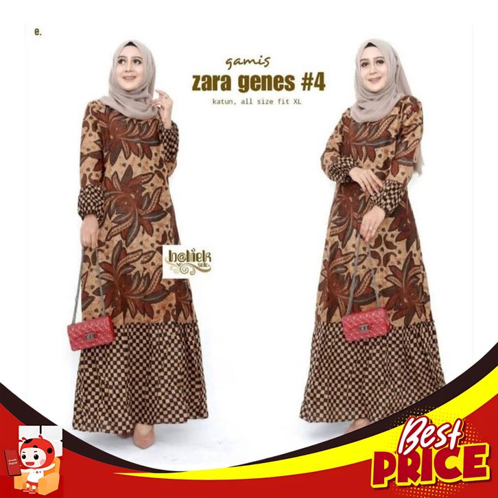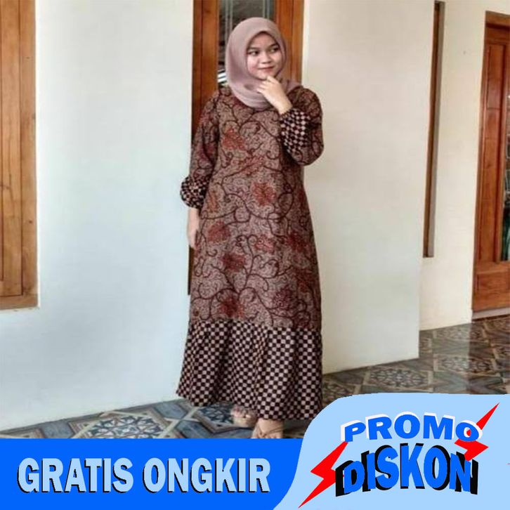 GAMIS BATIK MANGGAR GAMIS DEWASA BAJU BATIK KOMBINASI SAMBUNGAN BAWAH TANGAN KARET