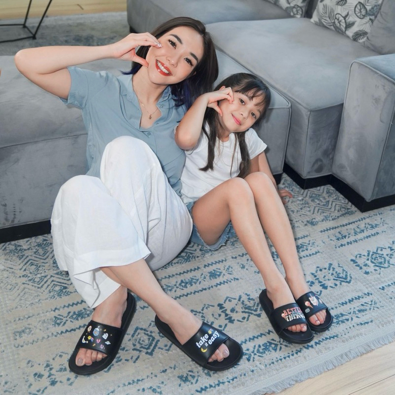 Sandal Slide Wanita Thesilversky Take It Easy Black Slides Premium Slip On Kids Adult Sandals Kekinian