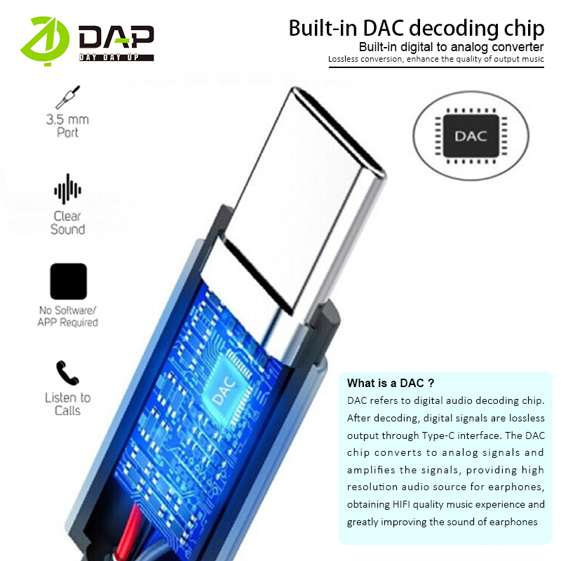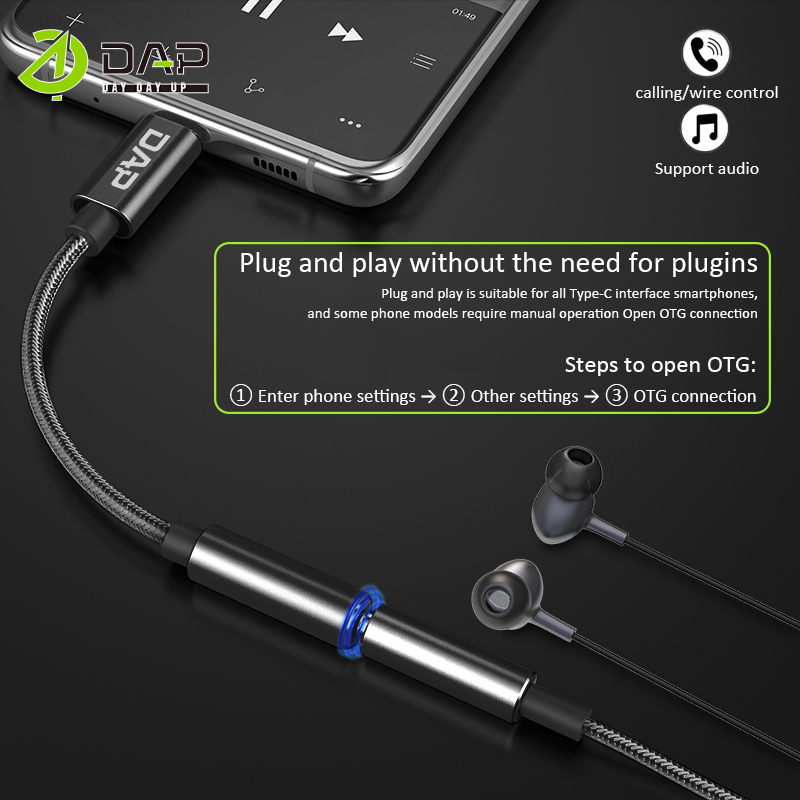 DAP D-AU04 Splitter Audio Type C to Female Jack 3.5mm Support Listen - Garansi 1 Tahun