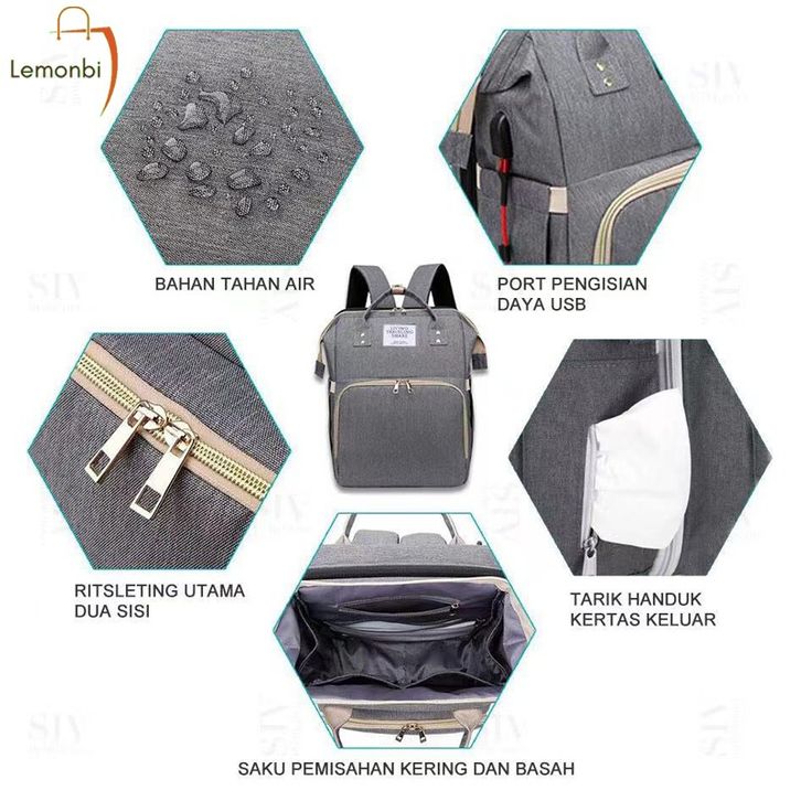 TAS TRAVELLING BAYI MULTIFUNGSI TEMPAT TIDUR LIPAT BABY DIAPERS BAG PERAWATAN TAS PERLENGKAPAN RANSEL BACKPACK CANVAS AN