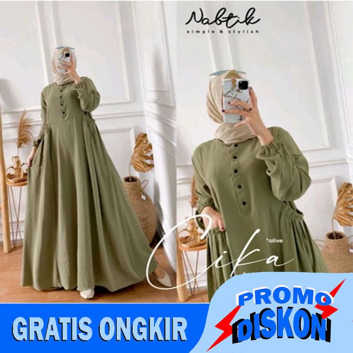 Gamis Wanita Dewasa Simpel Viral Bahan Crinkle Dres Cika Muslimah Elegan Mewah Gamis Remaja Kekinian