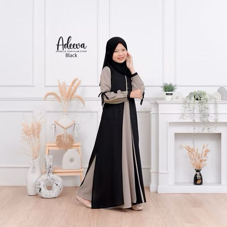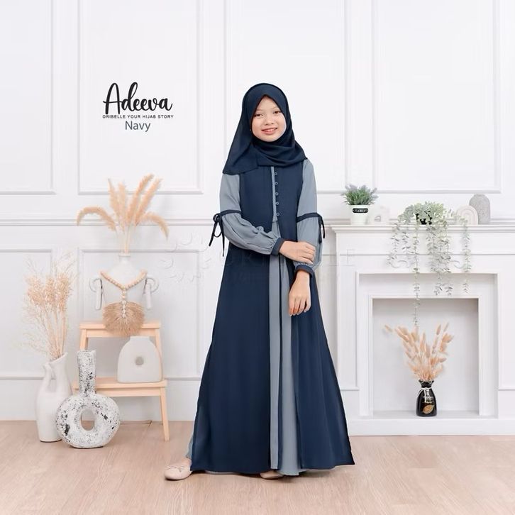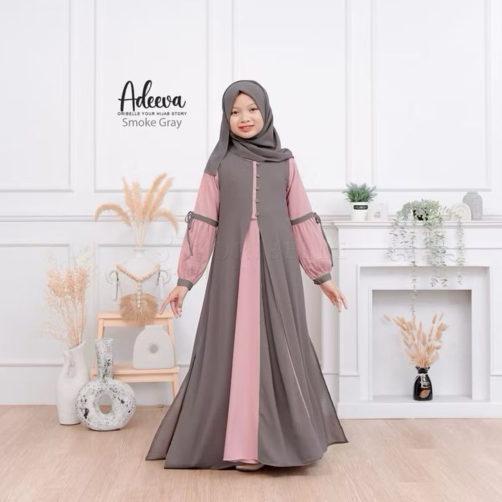Adeeva Kids Plus Kerudung Baju Gamis Anak Tanggung Perempuan Usia 10-15 Tahun Bahan Crinkle Mix Ceruty Babydoll Gamis Ko