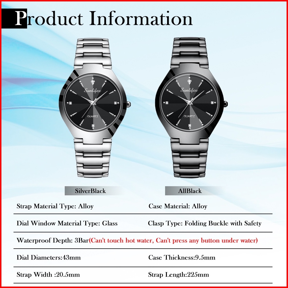Sunlifex Jam Tangan Pria Original 9090 Anti Air Kuarsa Pria Tali Stainless Steel Jam Tangan Cowok Santai Bisnis