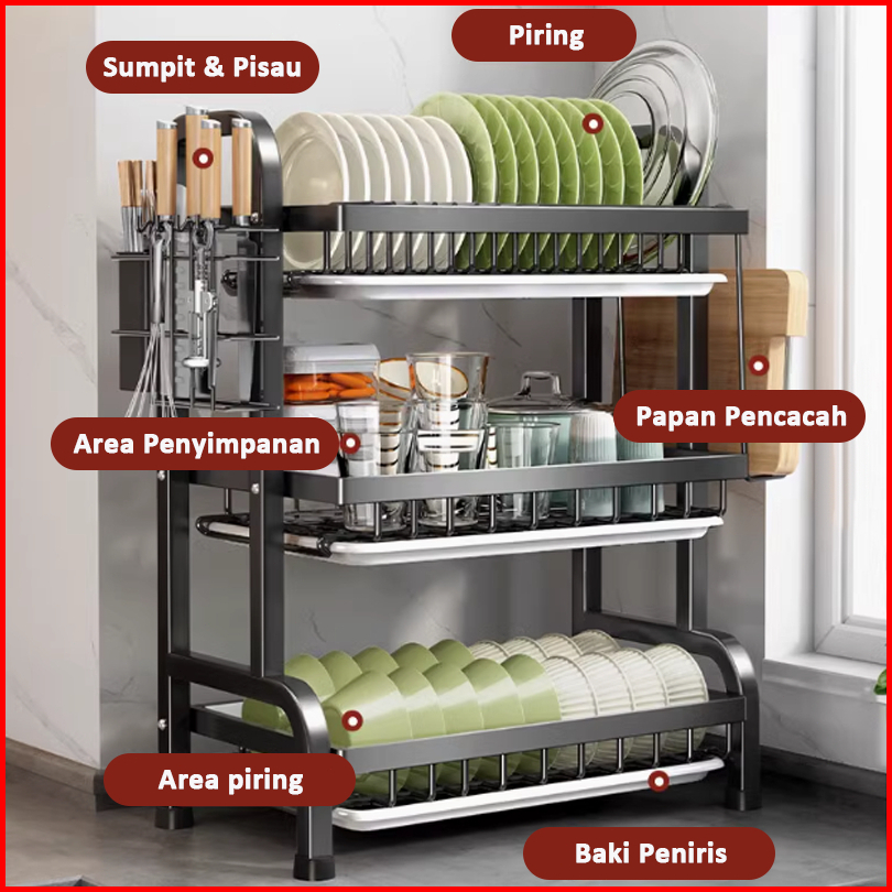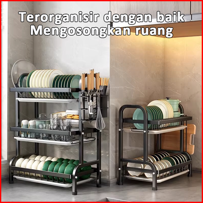 Sus304 Rak Piring Dapur Stainless Penyimpanan Rak Pengering Piring Rak Mangkuk Piring Rak Dapur Cuci Piring Wastafel