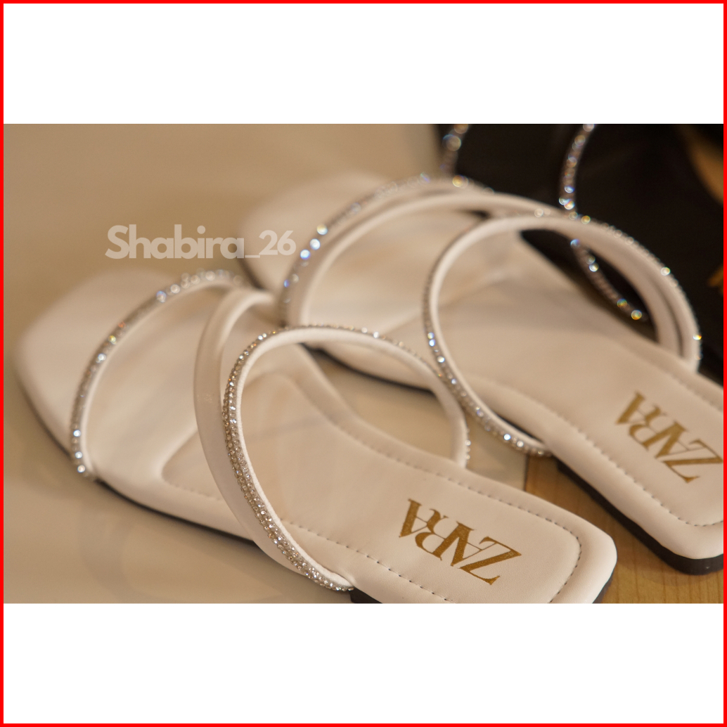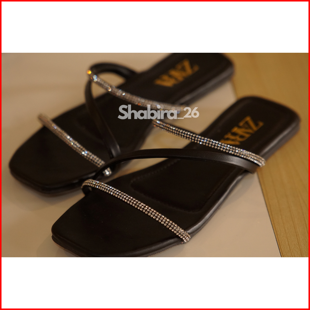 Sandal Permata Mewah Flat Wanita Terlaris Slop Wanita Garis Dua Permata Cantik