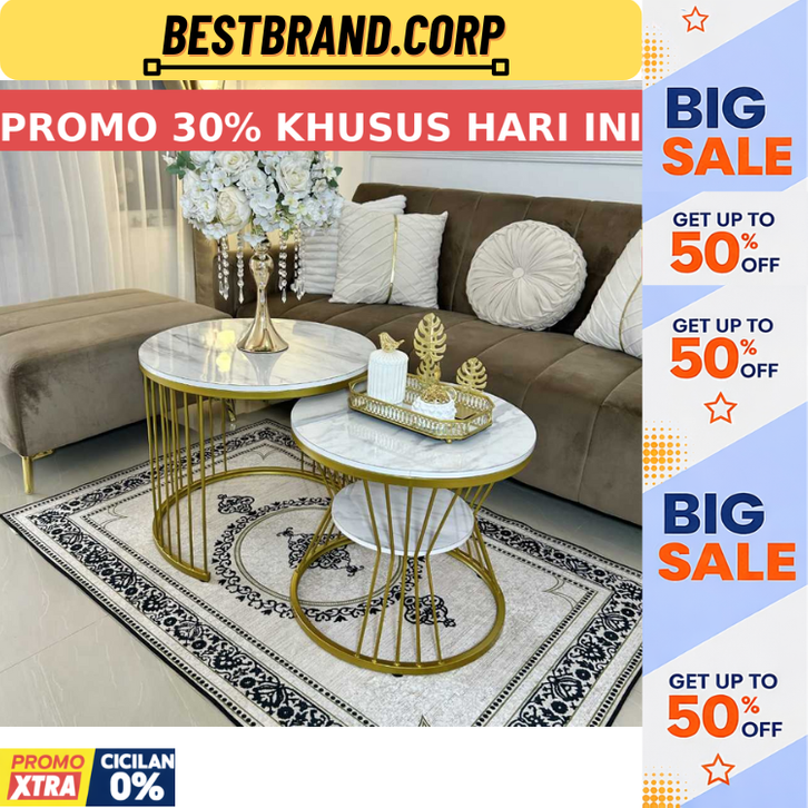 [Mall] Meja Tamu Meja Ruang Tamu Minimalis Murah Bulat Kayu Jati Marmer