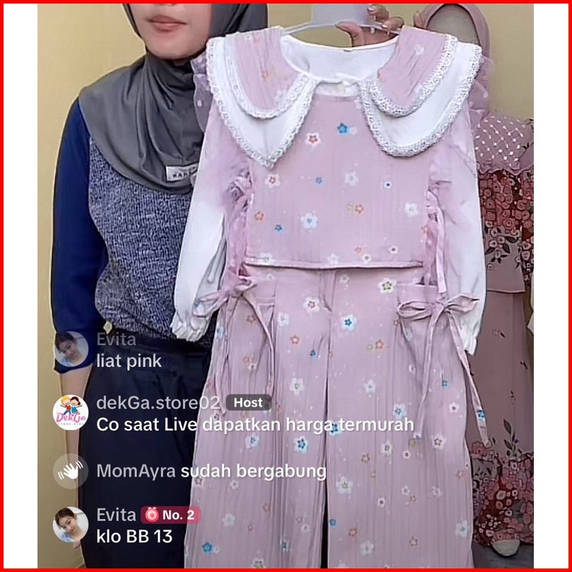 Set 3in1 Leora Setelan Anak Perempuan Korean Style Setelan Tali Pita Anak 2-12tahun