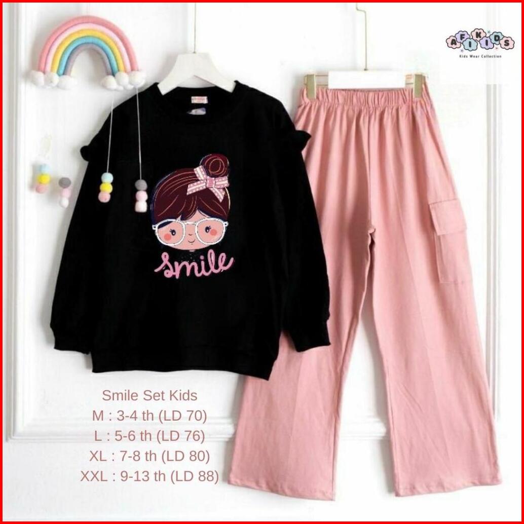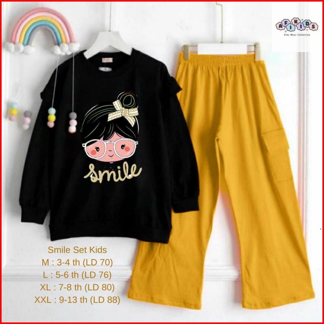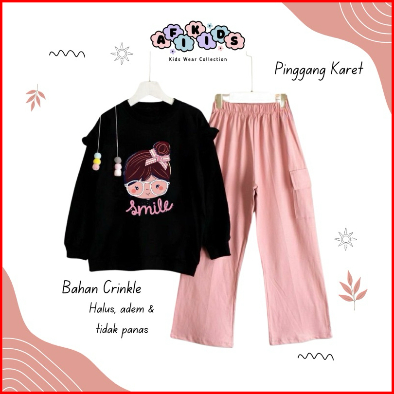 Smile Set Kids 3thn-13thn Celana Cargo Crinkle Printing Setelan Smile One Set Anak Remaja Setelan Anak Kekinian Setelan