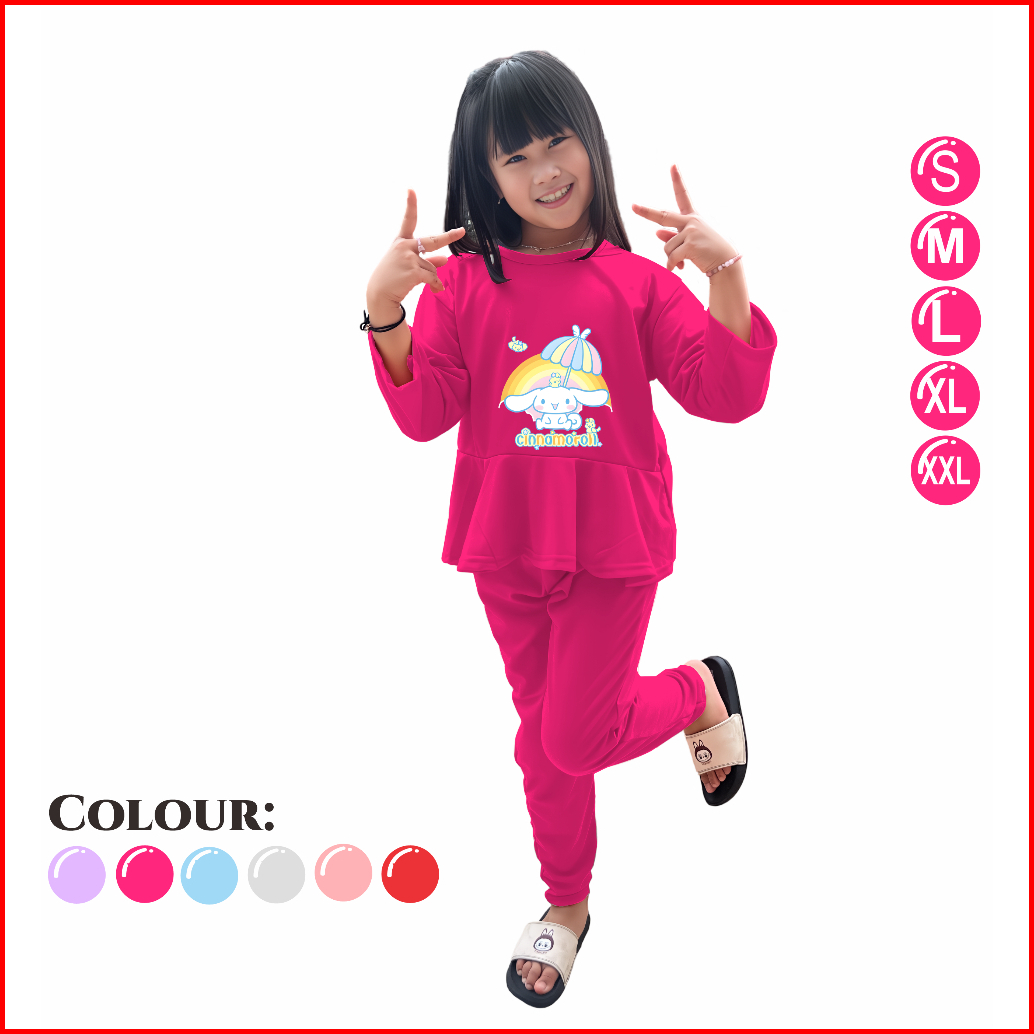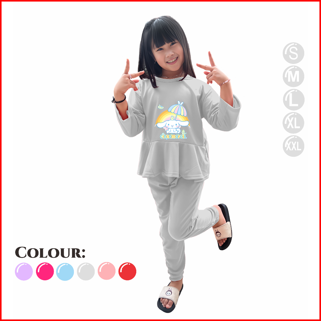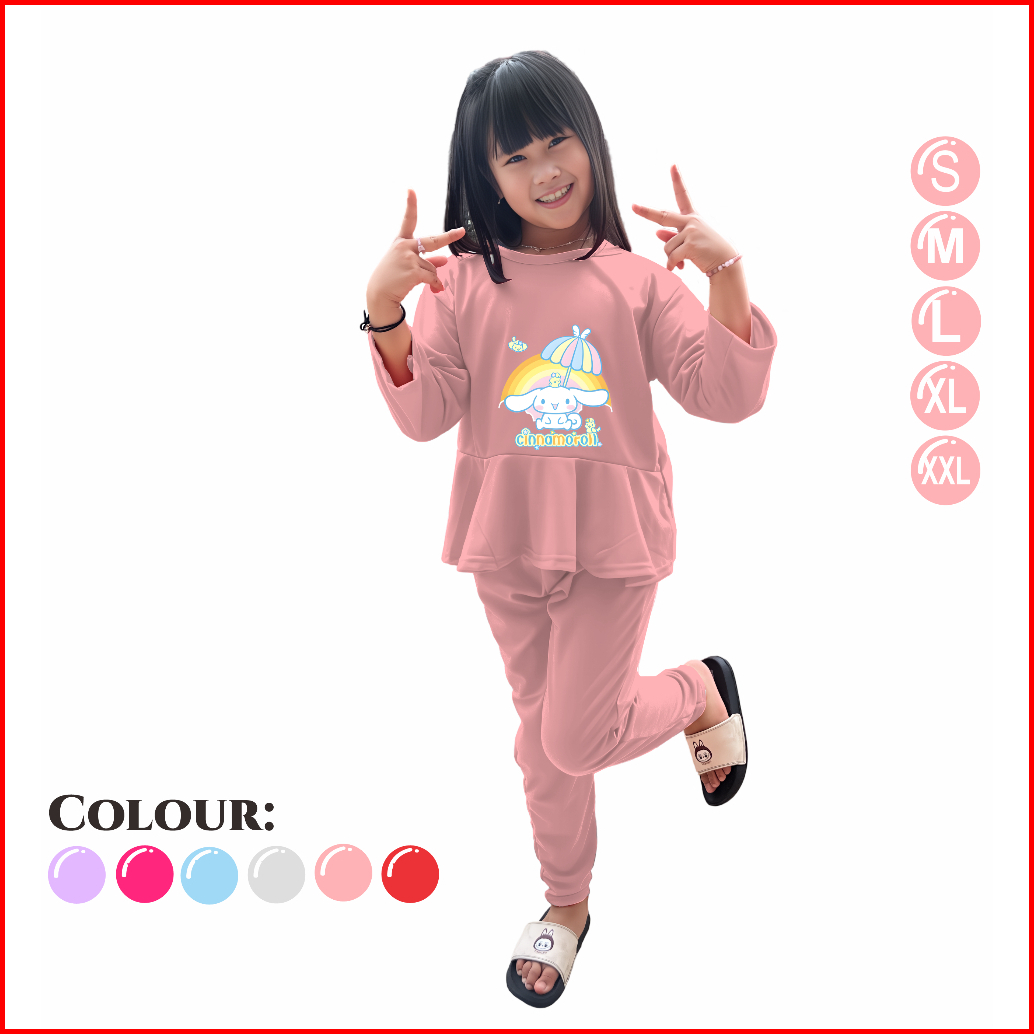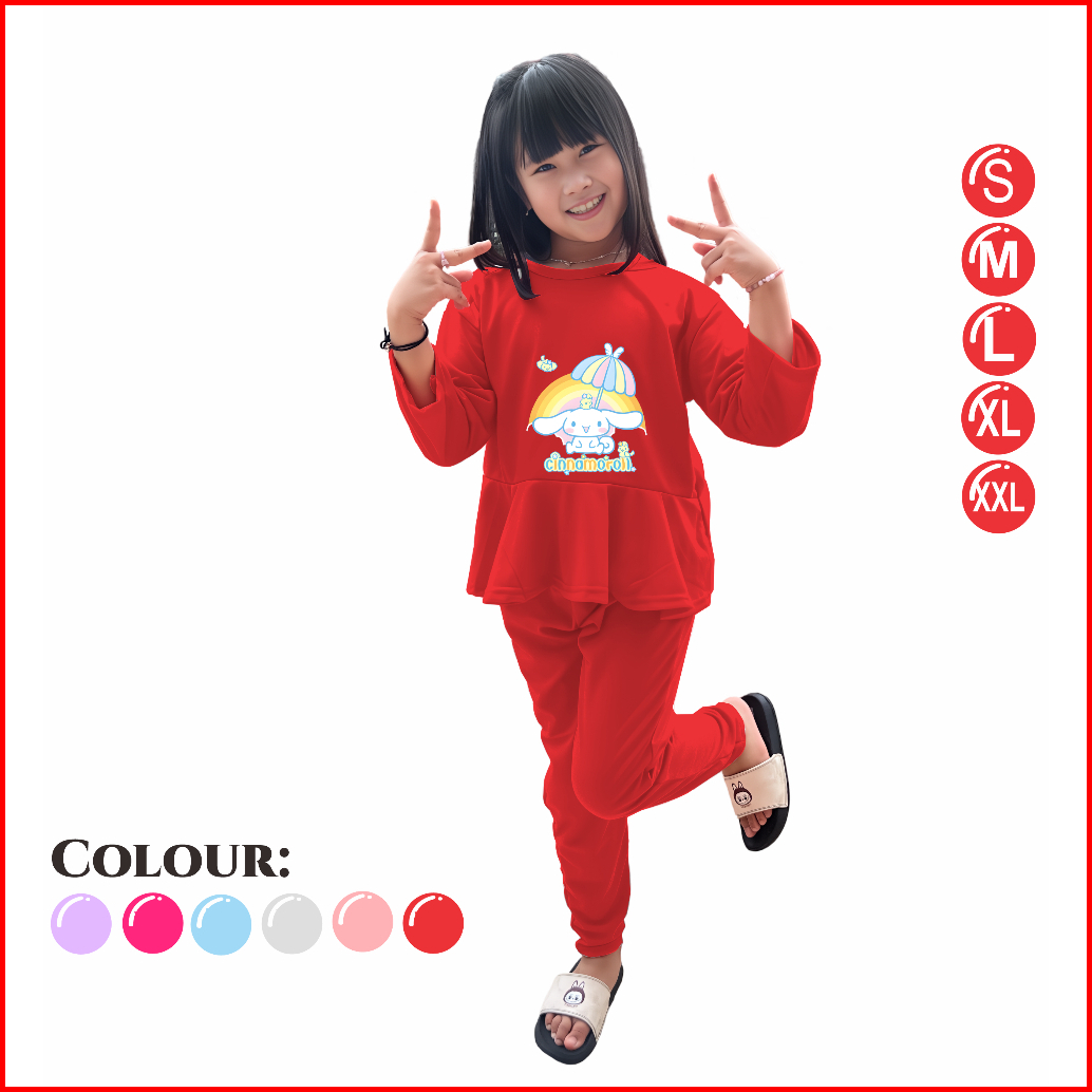 Baju Anak Perempuan - Setelan Kaos Dan Celana Panjang Anak Rumbai 4-15 Tahun - Cinnamoroll Merah