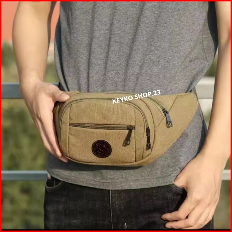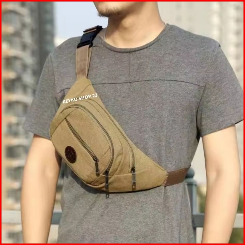 Flash Sale Tas Selempang Canvas Pria Waistbag Fashion Clasic Cowok Import Termurah