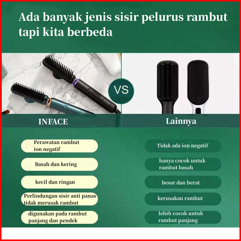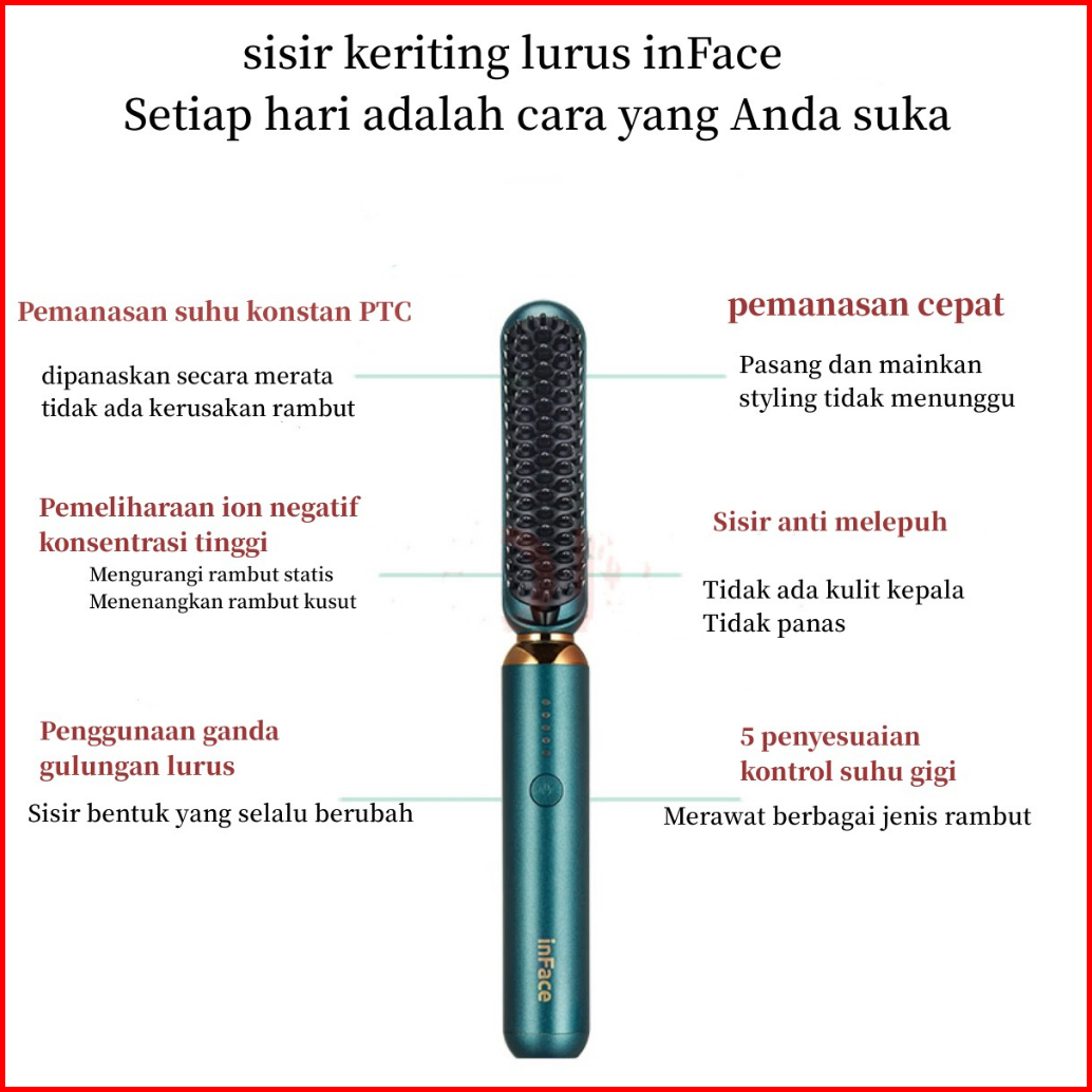Inface Catokan Sisir Pelurus Rambut Alat Catok Rambut Curly Rambut Catokan 2 In 1 Wet Dry Dual Use 25 Watts Zh10d