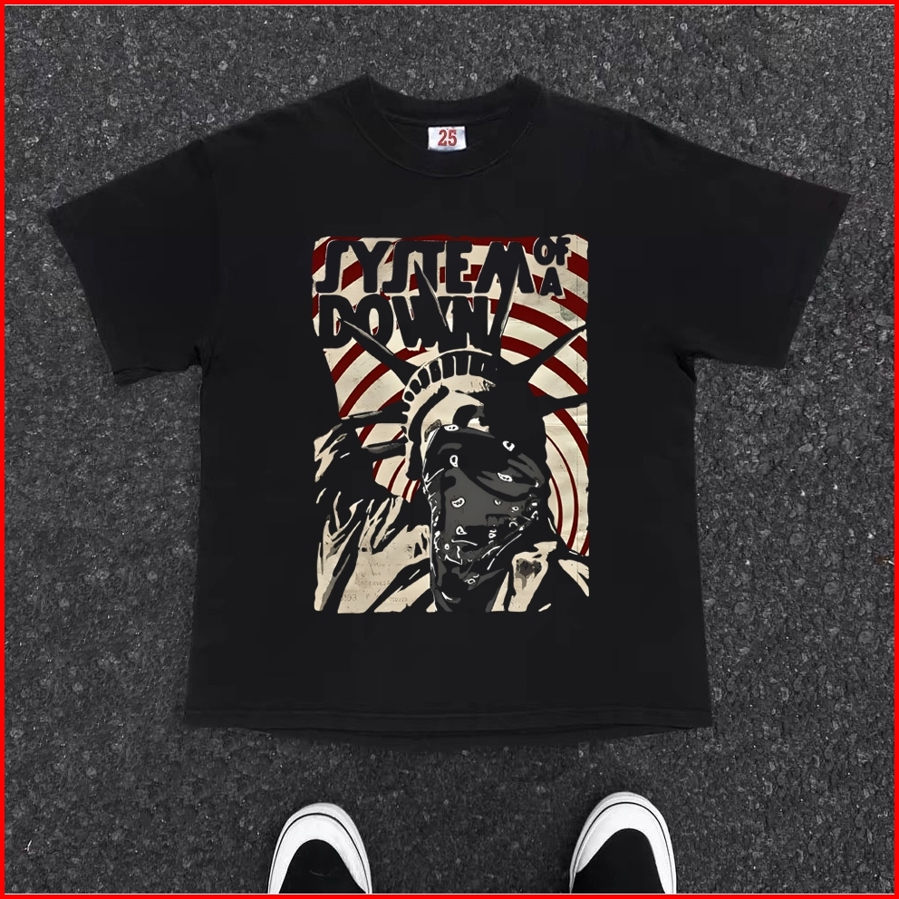 Boombap American Retro Style T-shirt Oversize Jyjtem Freedom Statue Kaos Wanita Hitam Kaos Pria Dan Wanita Street Style