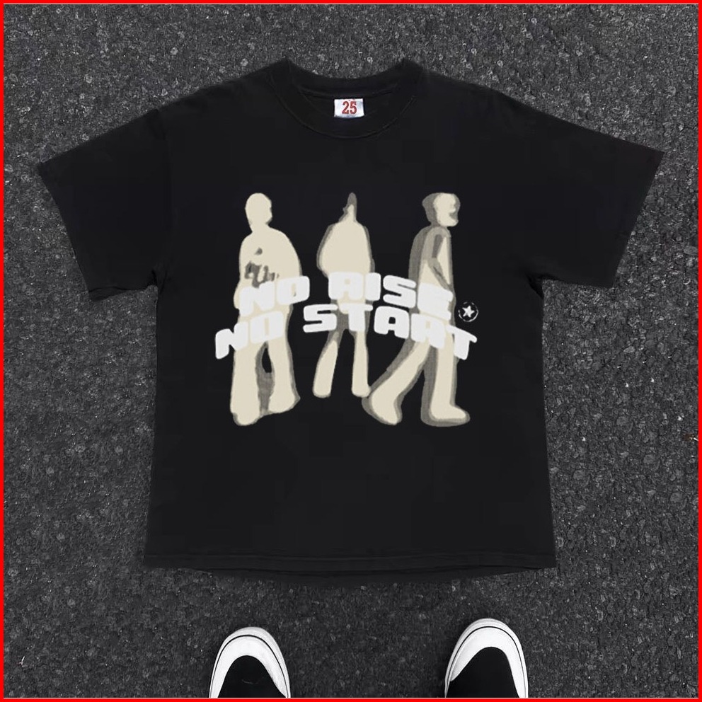 Boombap American Retro Style T-shirt Oversize No Rise No Start Kaos Wanita Hitam Kaos Pria Dan Wanita Street Style 100 C