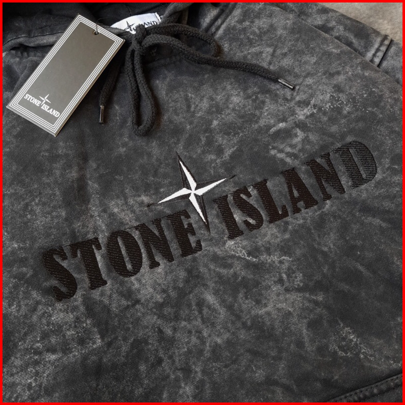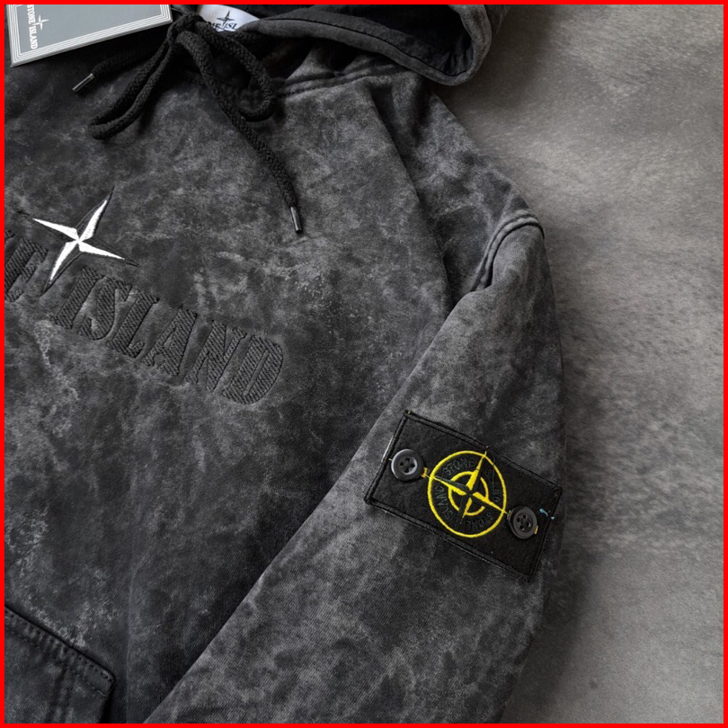 Jaket Sweater Hoodie Stoune Islands Text Bordir Abu Washing Fulltag Aksesoris