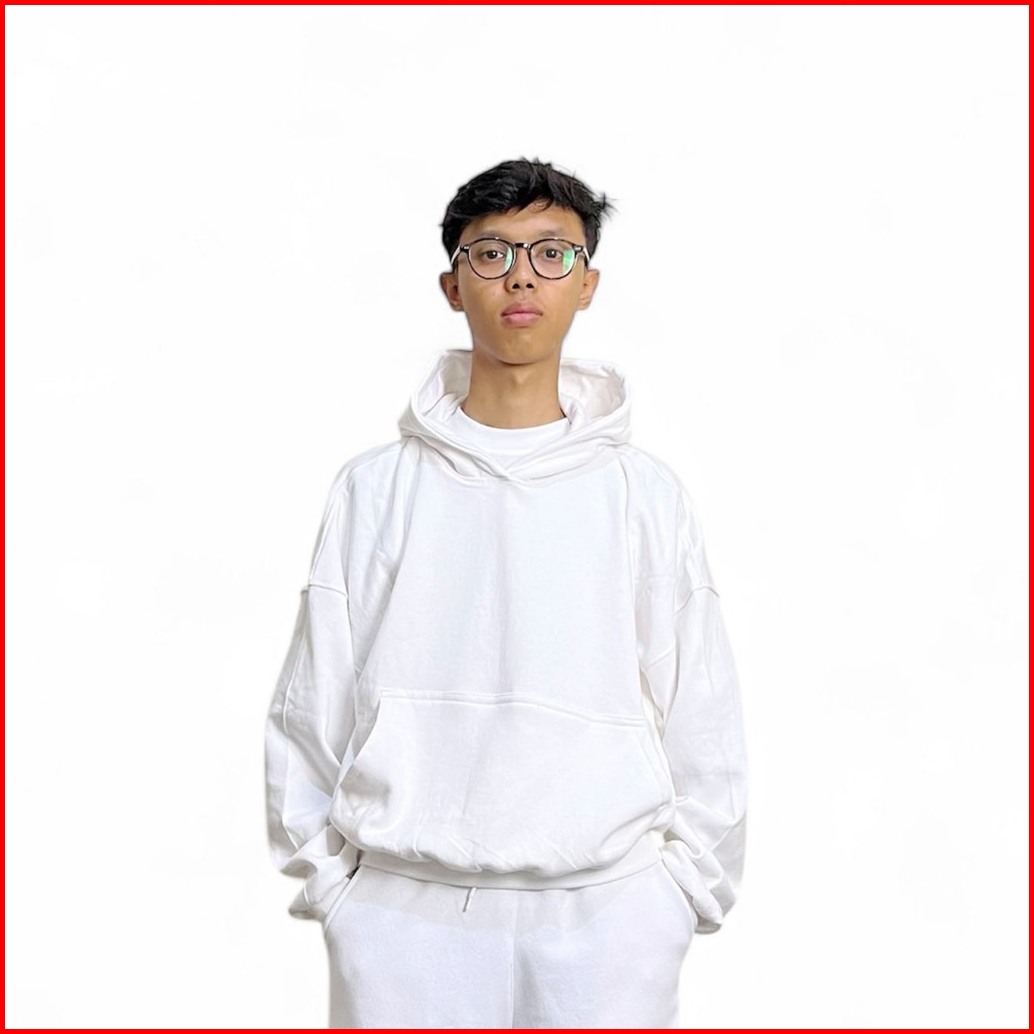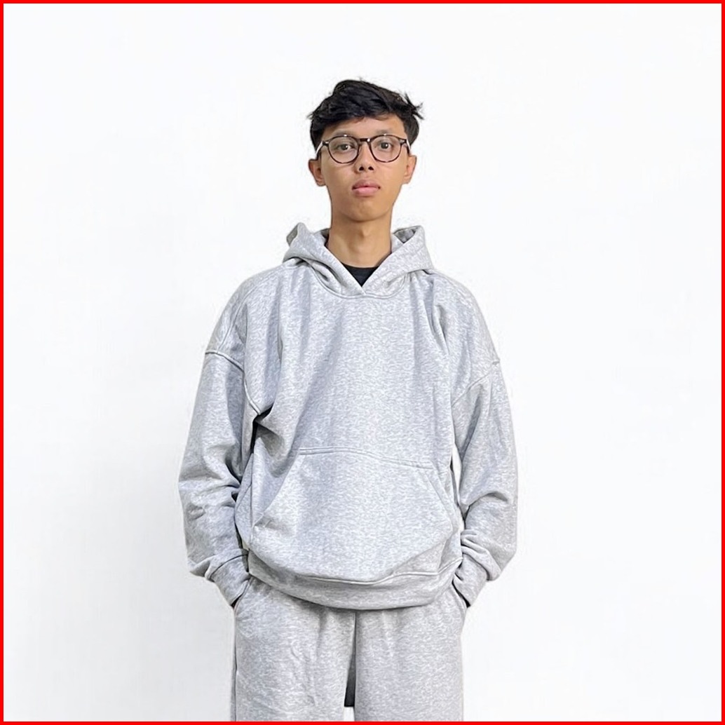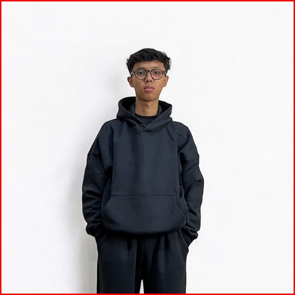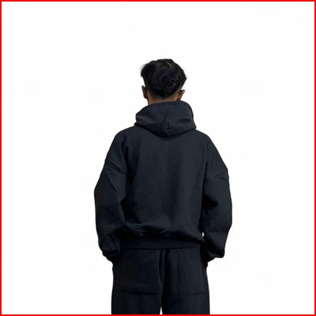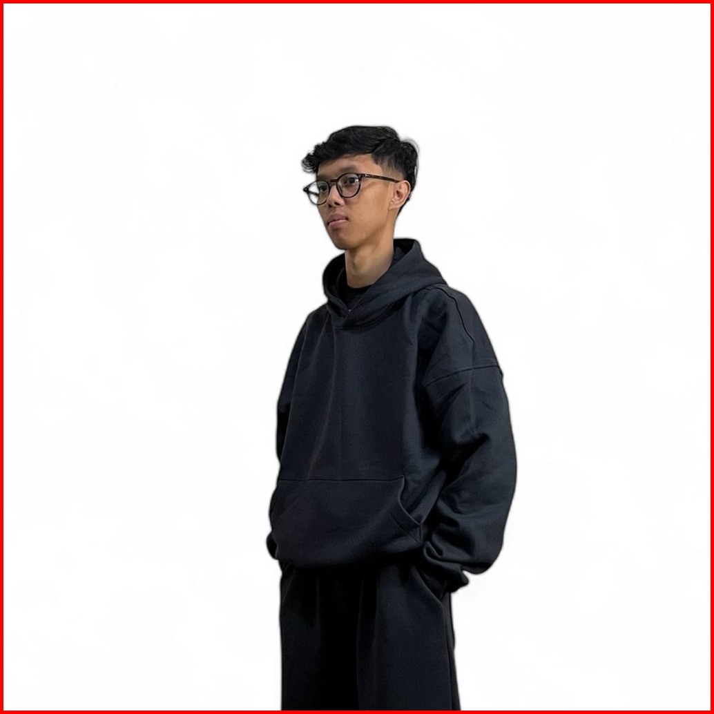 Erfolgreich - Hoodie Boxy Oversize Hitam Pria Wanita Cotton Fleece Tebal 300 330 Gsm Boxy Fit Polos Cotton Fleece Heavyw