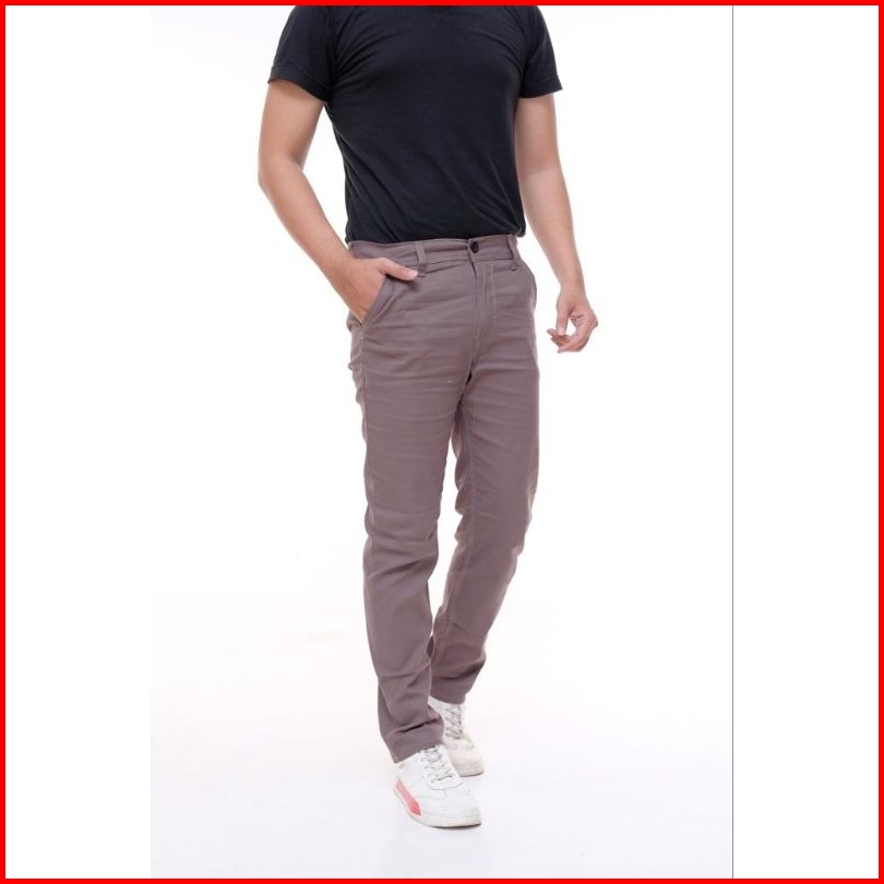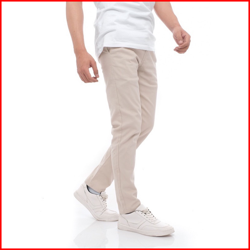 Celana Panjang Slimfit Chino Cino Chinos Pria Cowok Pensil - Krem Cream Abu Grey Hitam Black