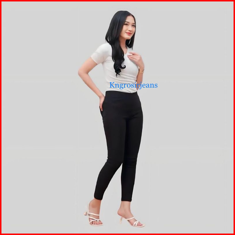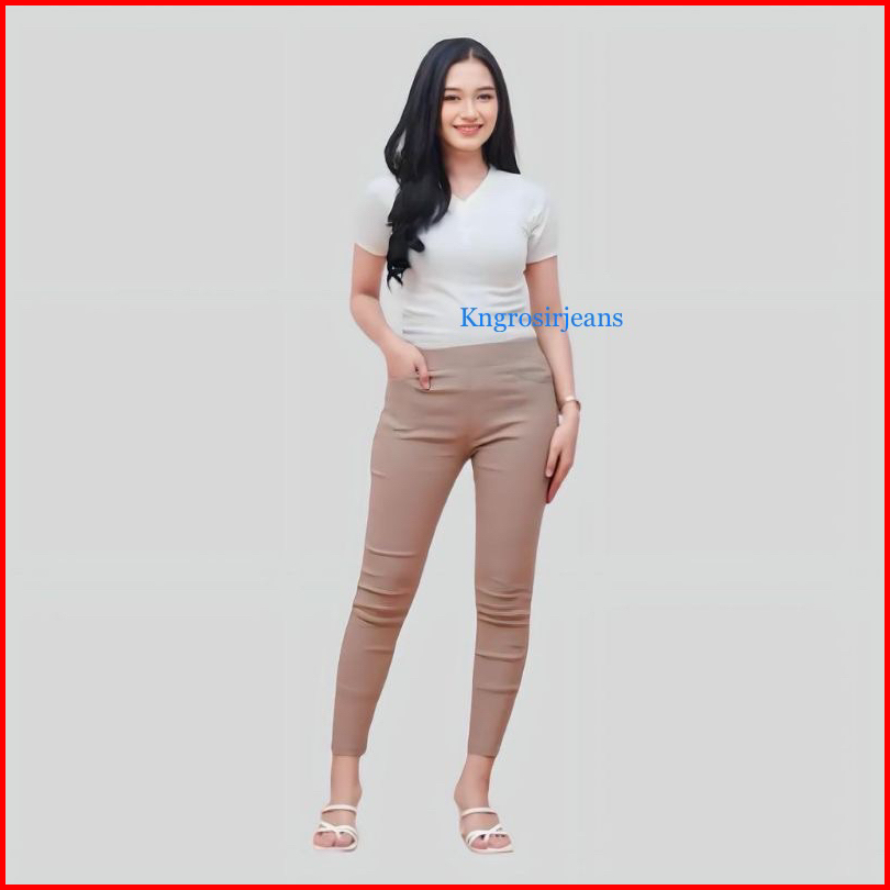 Celana Chino Wanita Bahan Street Mocca Hitam Krem Abu Tua