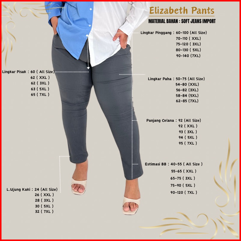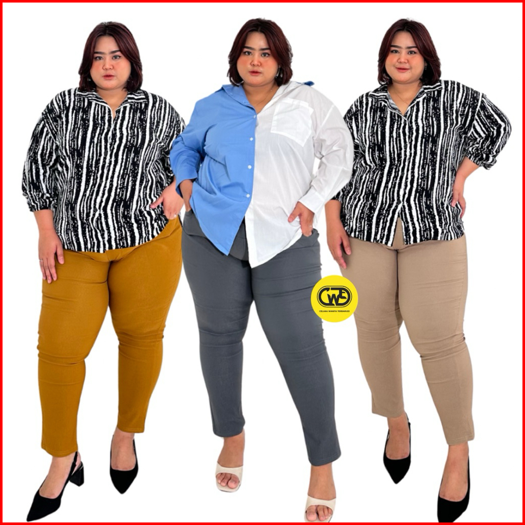 Celana Chino Wanita Jumbo Bahan Melar Elastis Elizabeth Pants Part 1