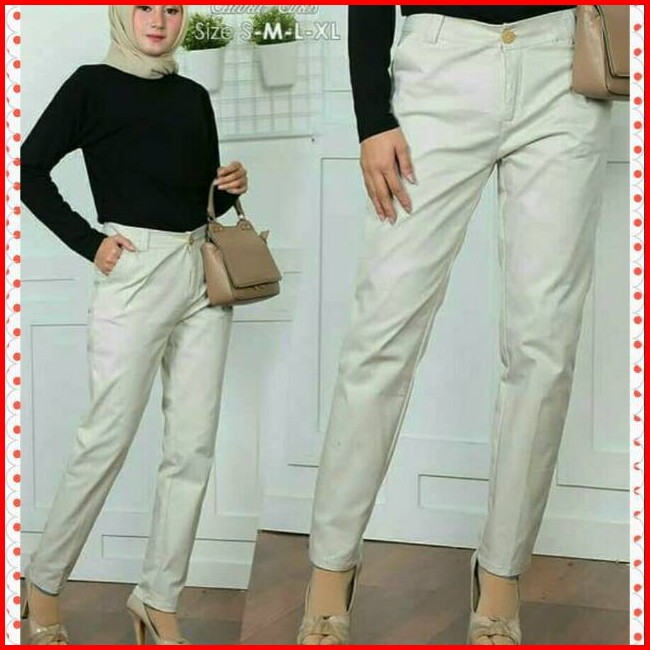 Celana Chino Chinos Skinny Wanita Chino Pants Panjang Celana Panjang Bahan Tebal Lembut Warna Cream