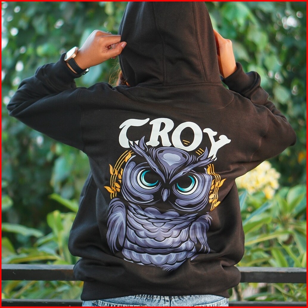 Troy Company Hoodie Pullover Black Bubo Little Owl - Sweater Hoodie Pria Hitam Kh 2362