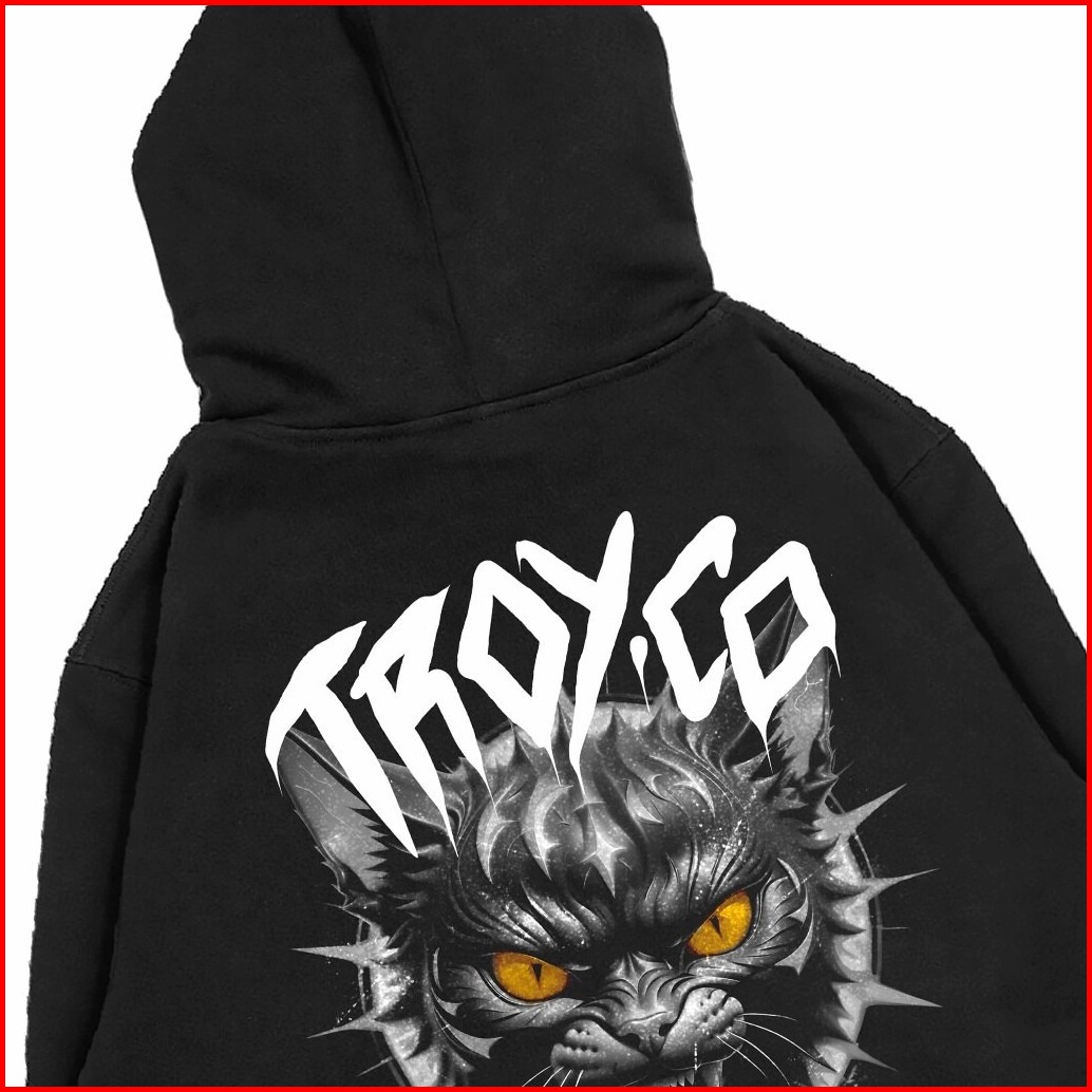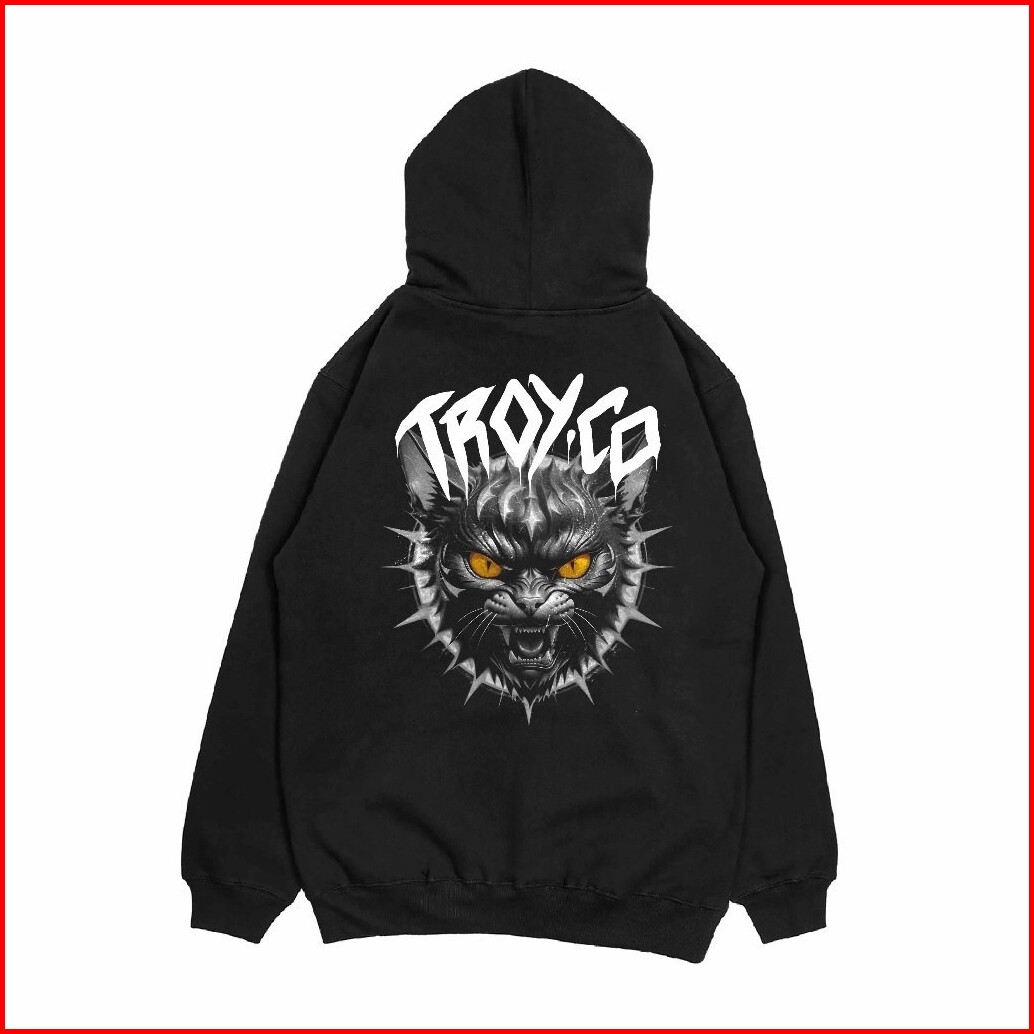 Troy Company Hoodie Black Demones Cat - Hoodie Pria Wanita Hitam Kh 2507
