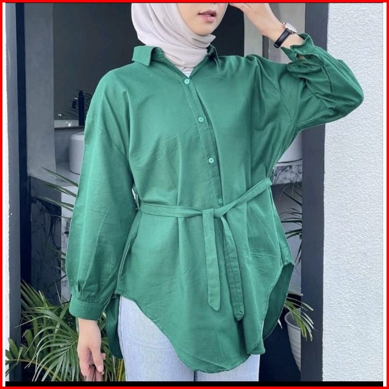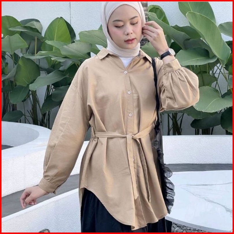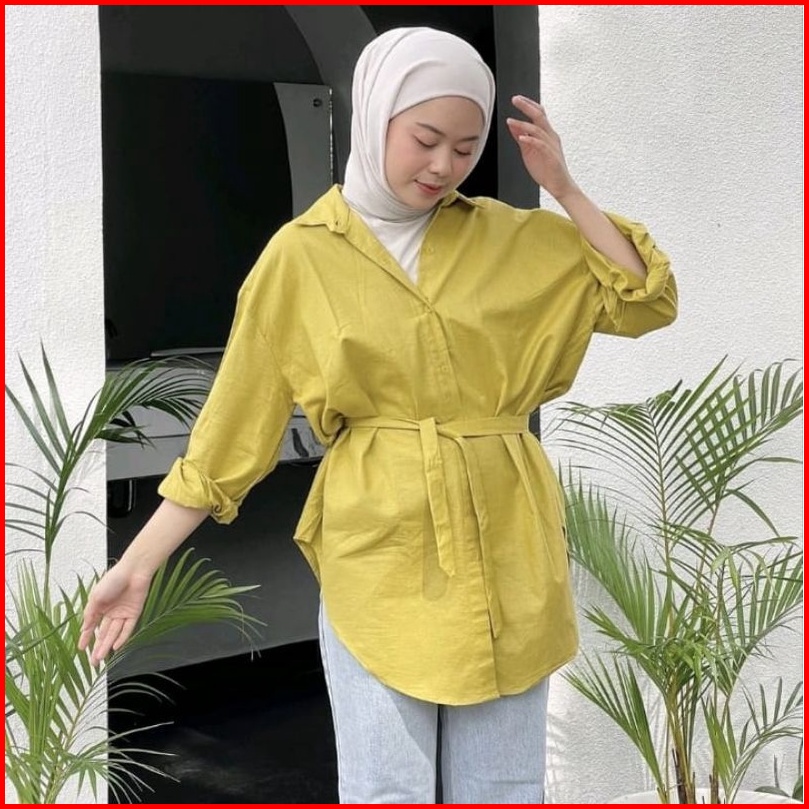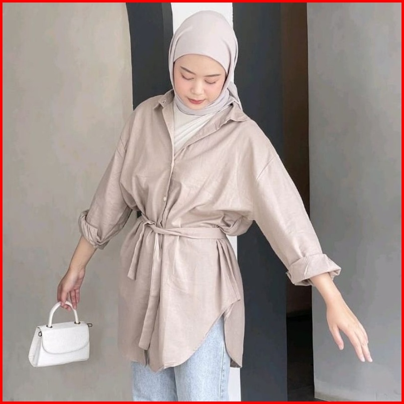 Malka Shirt - Kemeja Oversize Wanita - Oversized Shirt Linen - Atasan Tali Linen
