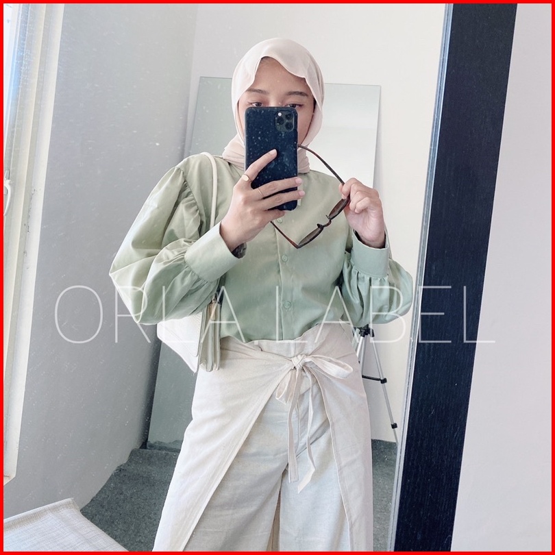 Gree Shirt Readystock Kemeja Polos Kemeja Polos Kerja Wanita Kemeja Lengan Balon Premium