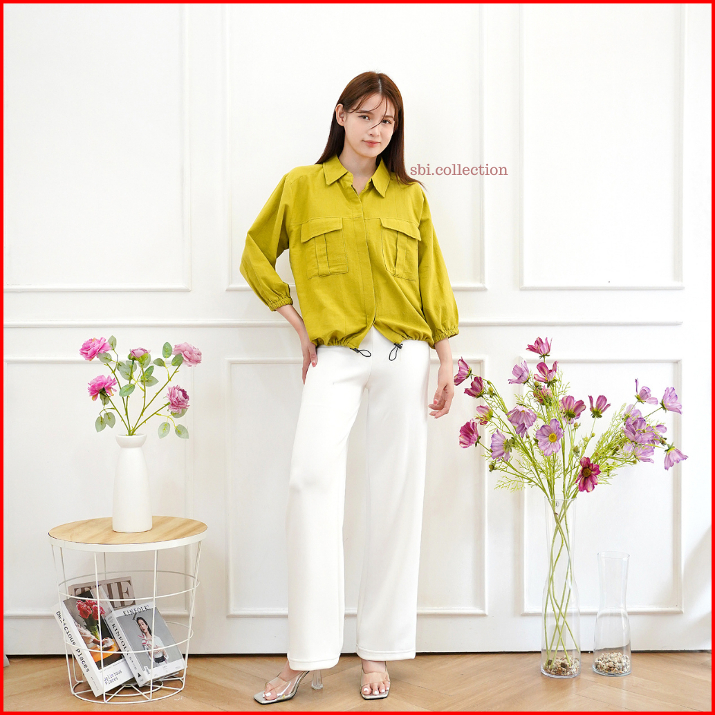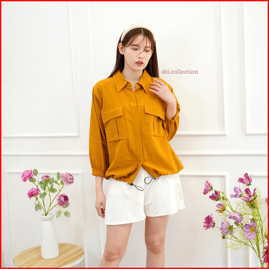 Sylvia Basic Button Shirt Atasan Blouse Kemeja Wanita Kancing Motif Polos Lengan Panjang S M L Xl