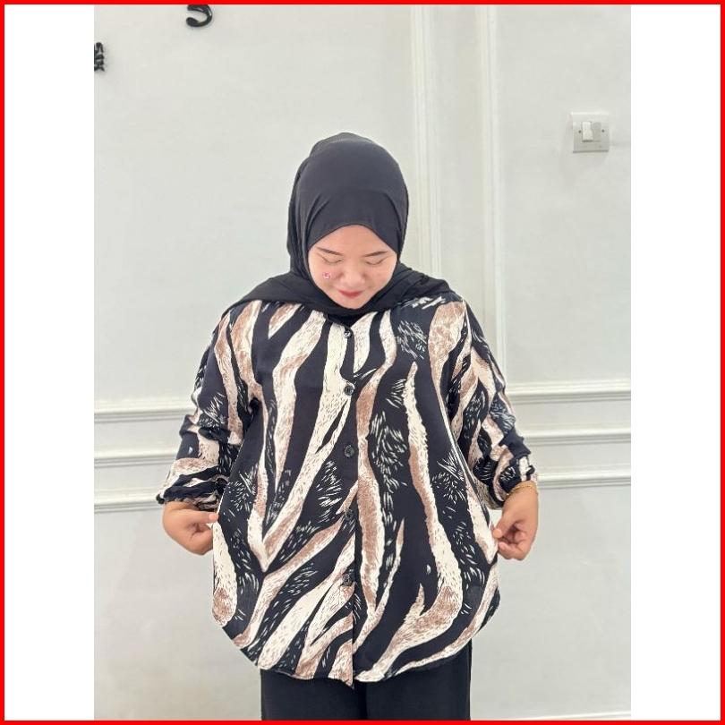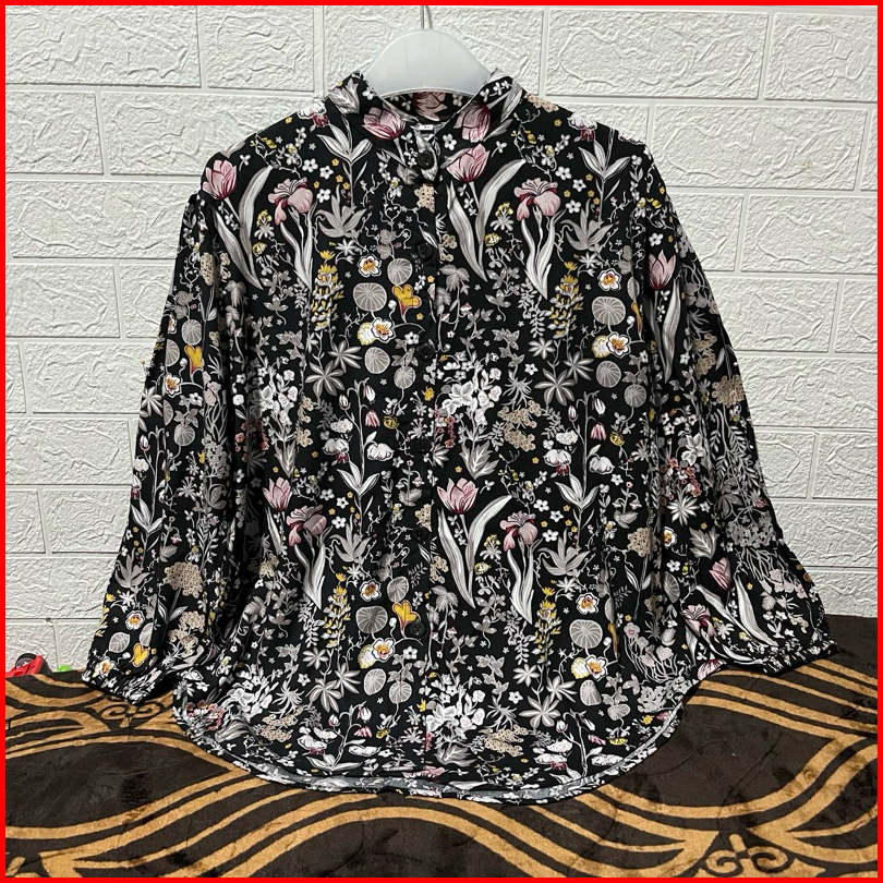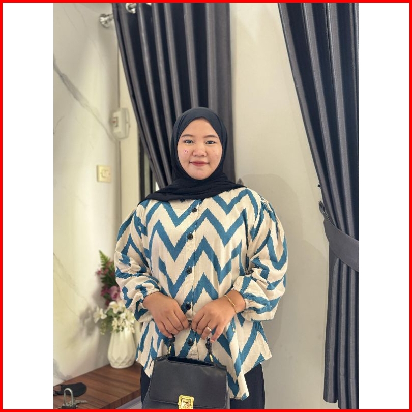 Eliza Blouse Oversize Lengan Balon Katun Rayon Motif Terbaru
