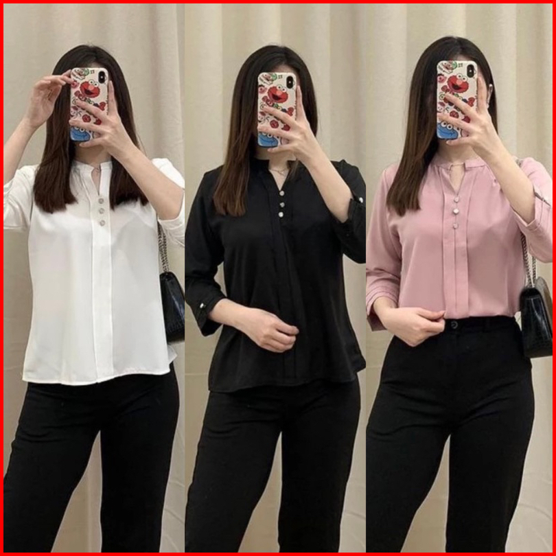 Paket 3pcs Bela Korea Blouse Cringkle Airflow Premium Polos