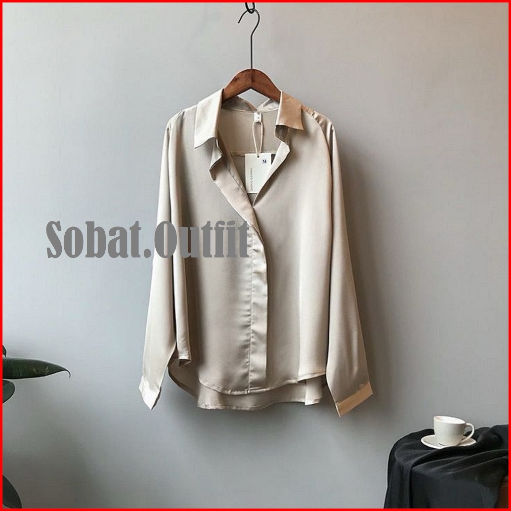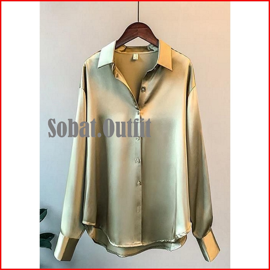 Kemeja Wanita Satin Kemeja Satin Oversize Wanita Lengan Balon Ld 110-130