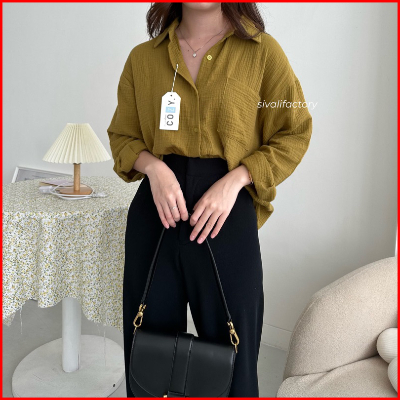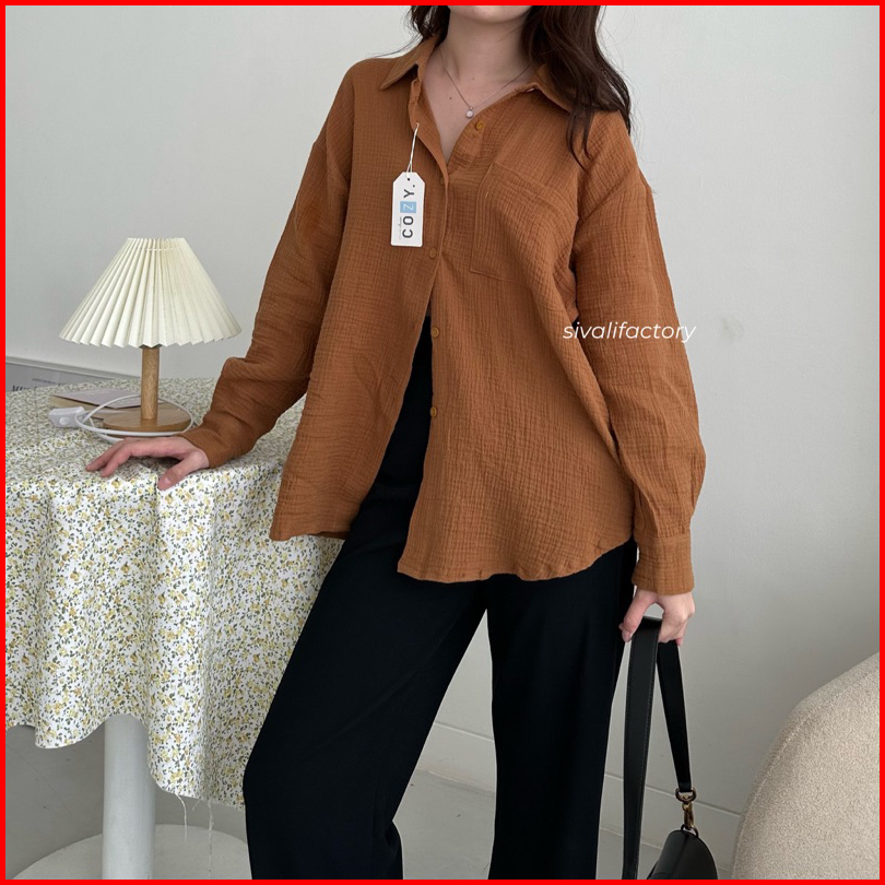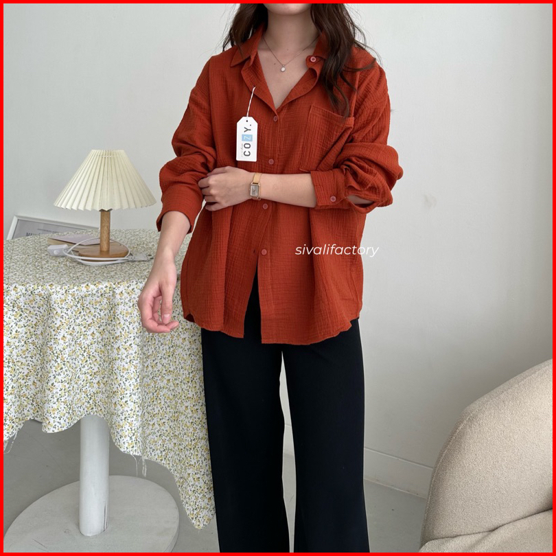 Sivali Kyra Top Kemeja Wanita Oversize - Basic Shirt Kemeja Polos Atasan Kerja Lengan Panjang
