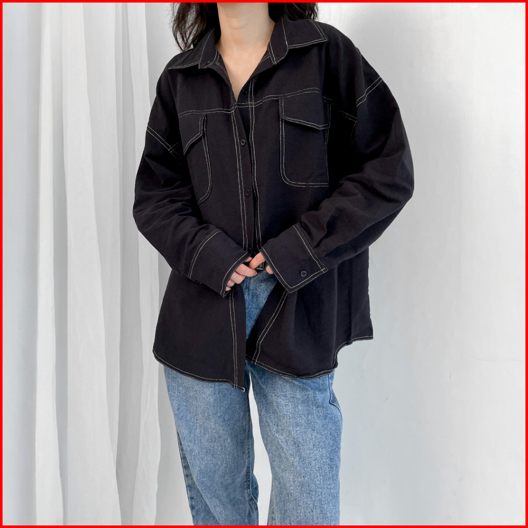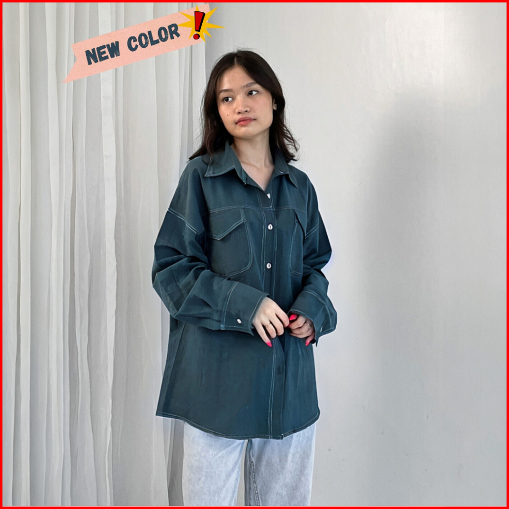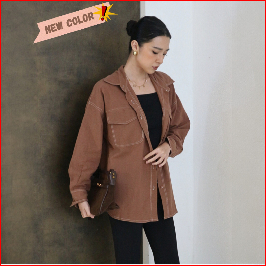 Aloha Keyla Linen List Overshirt Kemeja List Linen Oversize Wanita 2103
