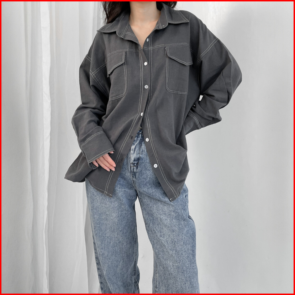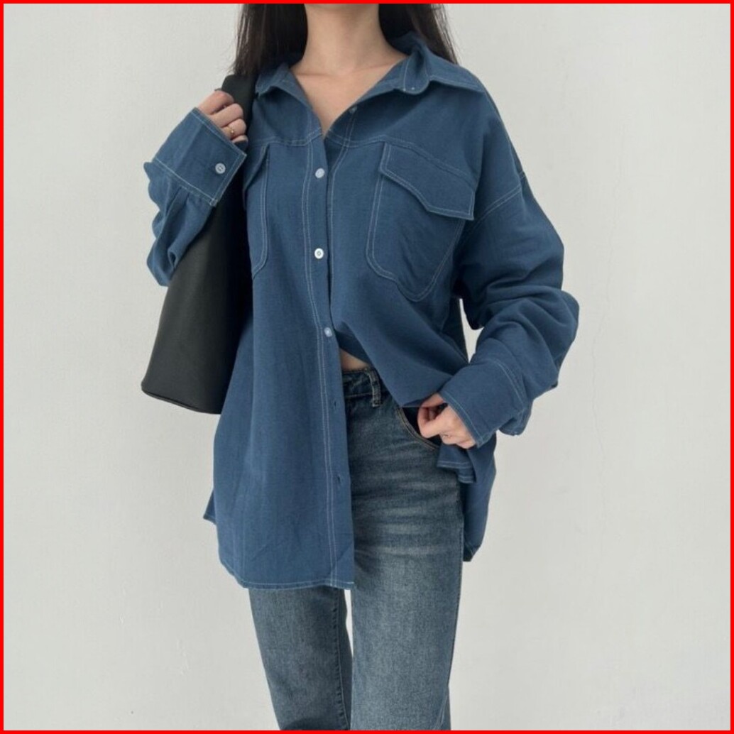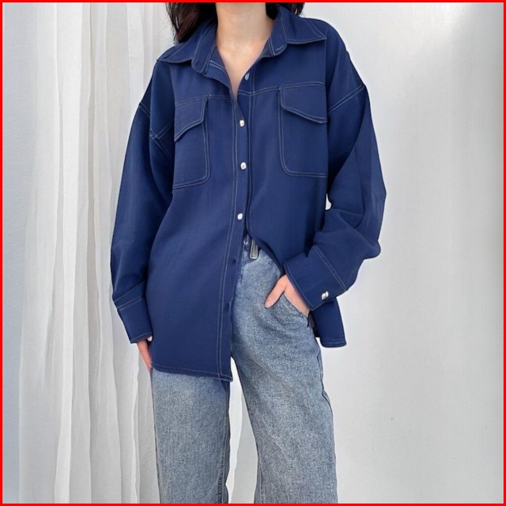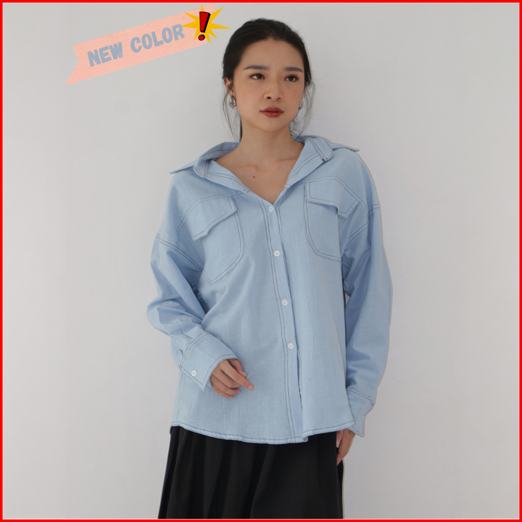 Aloha Keyla Linen List Overshirt Kemeja List Linen Oversize Wanita 2103