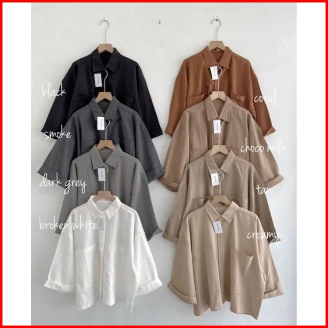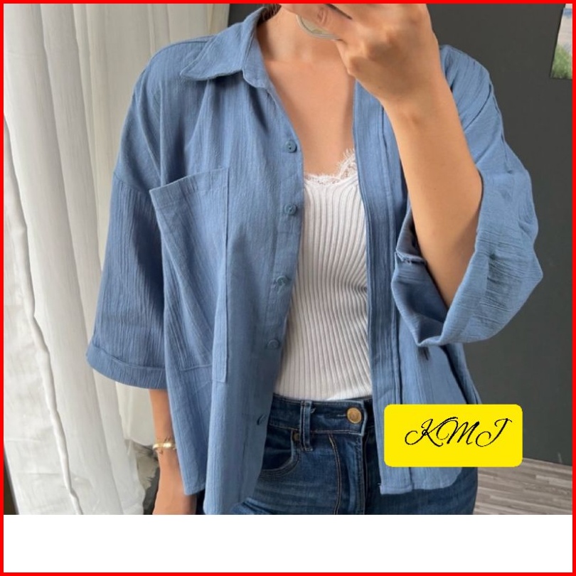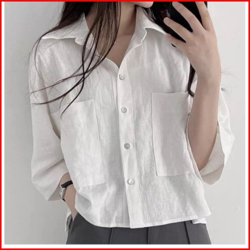 Kemeja Linen Pocket Oversize Shirt Linen Kemeja Kantong Atasan Wanita