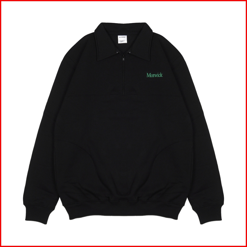 Morwick - Crewneck Pullover Halfzip Sweater Pria - Marka - Hitam