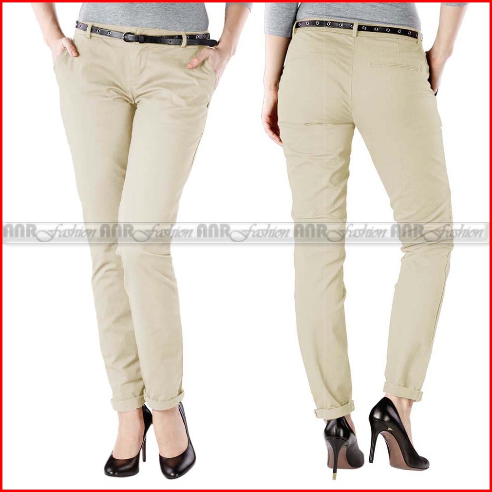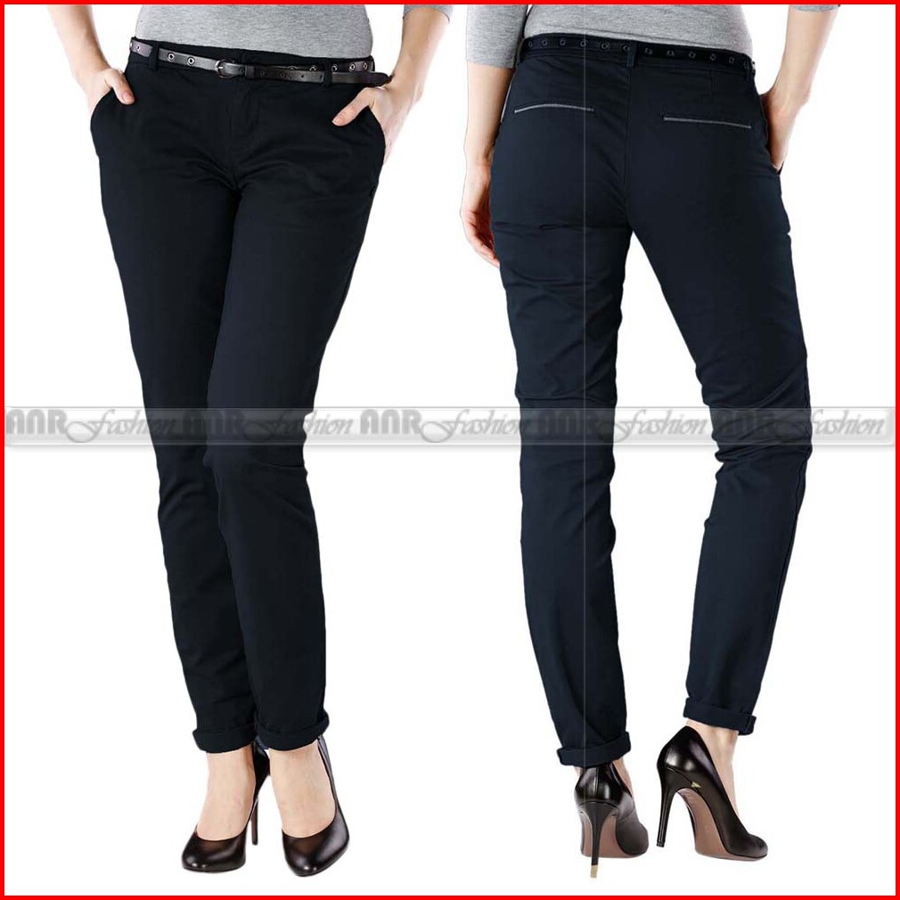 Celana Panjang Slimfit Skinny Chino Cino Chinos Wanita Cewek Murah Berkualitas - Krem Abu Hitam Navy