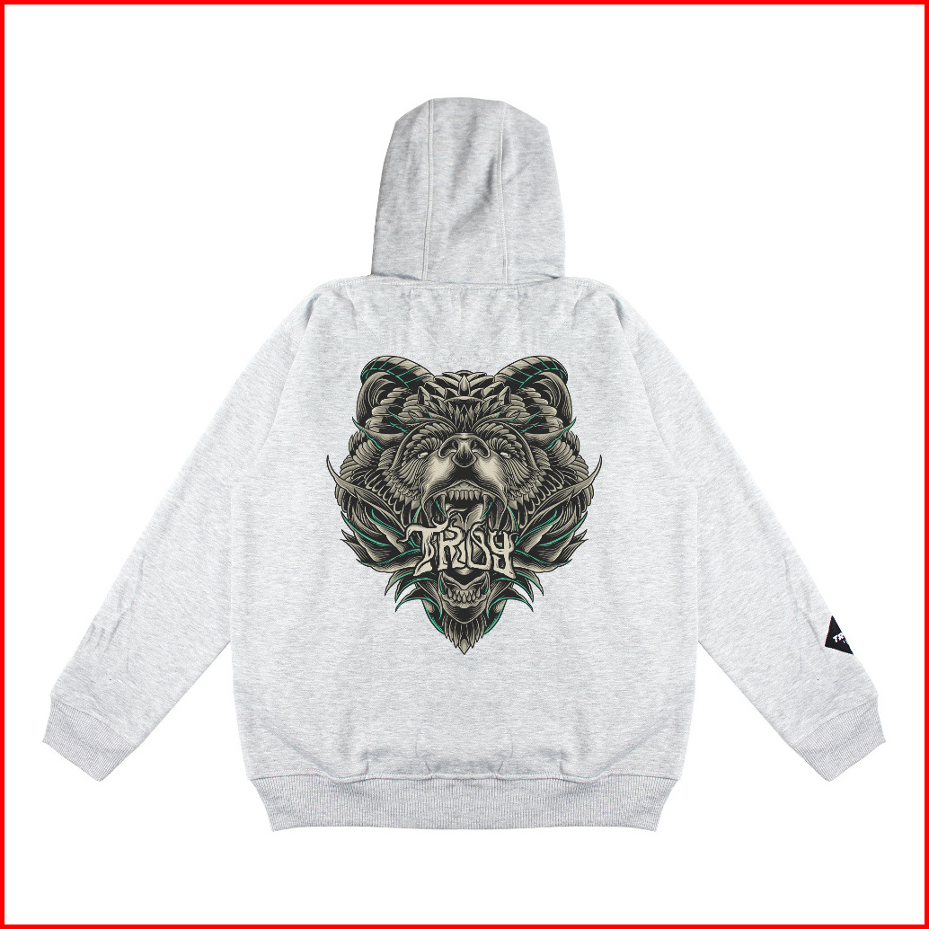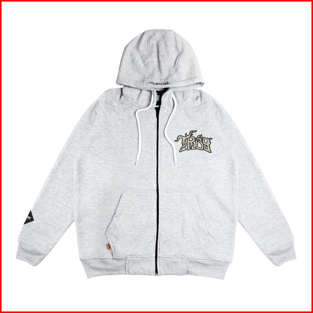 Troy Company Hoodie Zipper Grey Misty Onikuma - Jaket Jumper Hoodie Zip Abu Misty Zh 2845