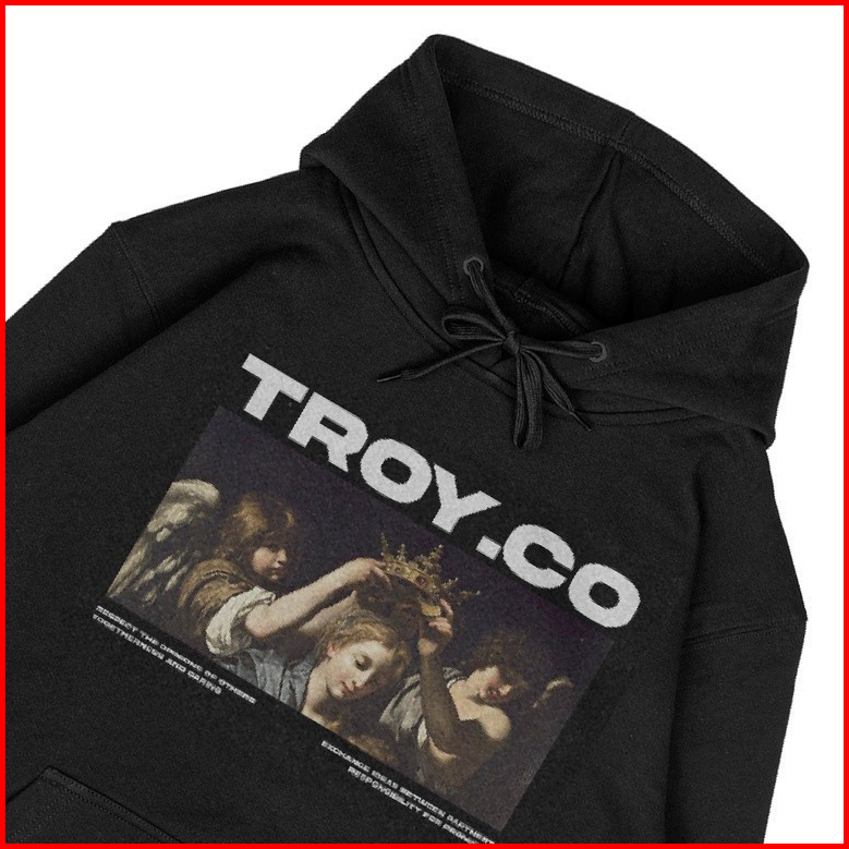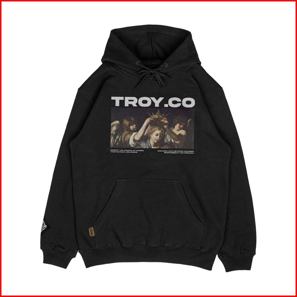 Troy Company Pullover Hoodie Black Virgin And Child With Angels - Jaket Hoodie Hitam Kh 2117